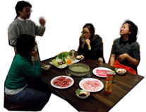 คืนนี้นัดแนะกับฮิโรไว้ให้ทำกับข้าวให้กิน เพราะได้ยินชื่อเสียงว่าฮีทำอาหารอร่อย จริงๆที่พักของฮิโรด้านล่างเขียนว่า Restaurant นะ แต่เปิดเฉพาะเวลาพ่อครัวว่างหรือพ่อครัวโดนรีเควสเท่านั้น 555 เราเลยขอรีเควสสักมื้อ เก๋บอกว่าปีก่อนฮิโรก็จัดปาร์ตี้ให้ ปีก่อนมีหอยเชลล์ มีปูฮอกไกโดด้วย โอ้ว…แม่เจ้า…อยากกิน แต่ปีนี้ไม่ีมีอ่ะ ฮีเลยทำสุกี้ เนื้อ หมู และแกะให้ พร้อมเทมปุระกุ้งตัวโต โอ้ว…จอร์จมันยอดมาก ซัดเบียร์ซัปโปโรไป ตบท้ายดัวยไวน์ เอิ๊ก…เมาซิ กลับไปนอนสบายใจ
