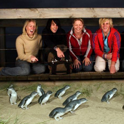 นั่งไปเริ่มโพล้เพล้เพนกวินก็ยังไม่โผล่ คอยต่อไปจนเริ่มมืด ยังลุ้นว่ามันจะโผล่ตรงไหนตอนไหน พอจนท.เริ่มชี้มือไปที่ทะเล ก็มองตามกันแต่ไม่เห็น อยู่ดีๆเพนกวินก็โผล่พรวดมาที่ริมหาด! กลุ่มแรกมา 2-3 ตัว สักพักเริ่มจับสังเกตุได้ มองดูแสงแว๊บๆในฟองคลื่นคือเงาสะท้อนท้องมัน มันจะโผล่พรวดขึ้นมายืนที่หาด เวลามามันมาเป็นกลุ่มๆ เหมือนทีละหมู่บ้าน แล้วแต่หมู่บ้านใหญ่หรือเล็ก กลุ่มใหญ่สุดมีเป็นสิบตัว จะมาพร้อมๆกันขึ้นมาพรึ่บๆ แล้วก็เดินเตาะแตะกันขึ้นมาบนหาด เดินขึ้นเนินไปด้านข้างๆอัฒจรรย์ของพวกเราเพื่อไต่เขาเข้าไปในรังของมัน เพนกวินที่นี่เป็นตัวเล็กๆสีเทาๆ เดินดุ๊กดิ๊กๆ เข้าไปในพงหญ้าด้านหลัง คือนอกจากนั่งดูมันขึ้นจากทะเลแล้ว ถ้าลุกจากที่นั่งเดินไปด้านหลังที่เป็นทางเดิน คุณก็จะเห็นเพนกวินที่ไต่เขาขึ้นมา เดินลอดใต้ทางเดินของพวกเรานี่แหละเข้าป่ากลับบ้าน ตรงนี้จะเห็นชัดเห็นใกล้มากๆเถอะ มันน่ารักมากๆนะ หัวหน้าหมู่จะยืนคอยสมาชิกจนครบแล้วเดินปิดท้ายขบวนไป บ้านใครบ้านมัน น่ารักมากๆ ระหว่างทางเดินกลับอาคารที่ทำการ เพนกวินบางหมู่บ้านอยู่ไกลมากเหอะ ก็เดินมากะเรานั่นแหละ แต่เราเดินบนทางไม้มีรั้วกั้น เพนกวินเดินด้านนอกเลาะป่ามาตามทาง เดินกันเห็นๆ เยอะแยะมากๆ บางพวกเดินมาถึงหลังที่ทำการด้วยซ้ำ จนท.ต้องมาคอยกั้นคนกันเลย ถึงว่าตอนจนท.ประกาศบอกว่าเวลาขับรถกลับก่อนถอยรถช่วยมองใต้ท้องรถด้วยอย่าเอาเพนกวินกลับไปด้วย ไอ้เรานึกว่ามุขตลก ที่แท้มันเดินมาถึงตึกเลยนะ อาจมีพวกที่เดินเข้าป่าไปทะลุที่ลานจอดรถได้เหอะ! นั่งดูอยู่ริมหาดจนถามกันว่า เอ…เราจะเลิกดูกันเมื่อไหร่ หรือจนท.เค้าจะรู้มั๊ยว่าหมดแล้ว ยังคุยกันไม่จบ ธรรมชาติก็ช่วยจัดการให้โดยการปล่อยฝนโครมลงมา 1 โครม วงแตกทันที ต่างคนต่างเดินแย่งกันกลับ อย่างที่บอกฟ้าฝนที่นี่มาไวไปไว แป๊บนึงก็หยุด เราจึงได้เดินคุยกับเพนกวินกลับมาอย่างสบาย แม้กางเกงจะเปียกๆแฉะๆหนาวๆก็เหอะ
