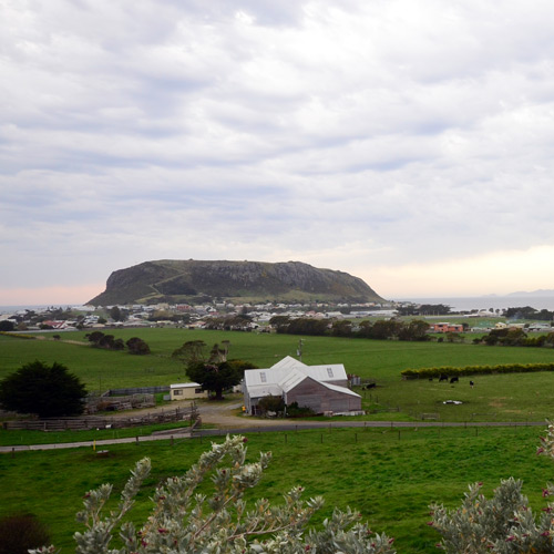 ด้วยว่าอากาศมัวซัว เราเลยตัดสินใจไม่แวะ Beach ที่ป้าสั่งเพราะคงไม่สวยนัก และเรายังต้องไปอีก 30-40 กม. เพื่อให้ถึง Stanley จะได้ขึ้น The Nuts ได้ทันก่อน Cable car ปิดตอน 4 โมงเย็น พลขับเหยียบไปเต็มลิมิต เราก็มาถึง Stanley ในเวลาใกล้เคียง 4 โมงเย็น มองเห็น The Nut ตั้งแต่ยังไม่เลี้ยวแยกเข้าเมือง