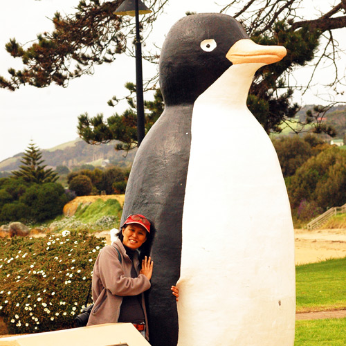 อิ่มแล้วออกเดินทางต่อ เรายังคงใช้ tourist route ช่วงต่อจากนี้จะเป็นถนนเลียบทะเล อากาศไม่แจ่มนัก ฟ้าปิดแต่ก็ถือว่าโอเค ฝนไม่ตก ขับไปถึงเมือง Penguin ต้องขอแวะเพราะเจ้าเพนกวินยักษ์ยืนยิ้มเผล่อยู่ริมหาด (เราตัดโปรแกรมไปดูเพนกวินเดินกลับรังที่ Low head ออก เพราะเมื่อวานขี้เกียจแล้ว เหนื่อยด้วย มันต้องขับรถออกจาก Launceston ไป Low head อีกเป็น 100 กิโล ดูเสร็จมืดๆขับกลับมานอน Launceston อีก เลยไม่ไปล่ะ) เมืองนี้น่ารักดี ไม่ได้มีเพนกวิน แค่มีชื่อเพนกวิน แวะเข้า Tourist information เพื่อซื้อของที่ระลึกเล็กๆน้อยๆ ได้คุยกับป้า cashier ป้าใจดีมากช่วยเหลือสุดๆ พร้อมเอาแผนที่มากางชี้ว่า จากนี้ไปเธอต้องแวะที่ Wynyard นะ must see เลยนะเธอ ป้าแนะนำ 2 จุดคือ Table Cape มันมี Tulip field ป้าย้ำนักหนาว่าต้องแวะๆๆ และอีกที่คือ Boat Harbor Beach ป้าว่ามันสวยมว๊ากกกก เมื่อคืนเราก็อ่านโลกโดดเดี่ยวมา เจอเหมือนกันว่าช่วงปลายเดือนกันยาถึงต้นเดือนตุลาจะเป็นเทศกาลดอกทิวลิป ยิ่งป้ามากำชับด้วยแล้ว เราคงต้องแวะ แม้ไม่อยู่ในโปรแกรม!