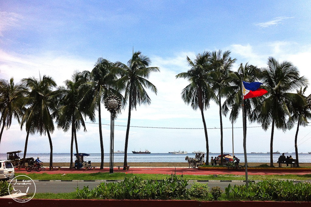 อยู่แต่ในโรงแรม ไม่ได้มีเวลาไปเดินเล่นชมเมือง ได้ชมวิวจากโรงแรมเป็นหลัก ที่พักอยู่ติด อ่าวมะนิลา | Manila Bay น้ำทะเลสีฟ้าสวย ลมแรงมากๆ กิจกรรมชายหาดเท่าที่เห็น คือ นั่งรถม้า นั่งสามล้อถีบ กับมานั่งเล่นรับลมชมวิว แต่ไม่ค่อยเห็นร่มกับเก้าอี้ชายหาด