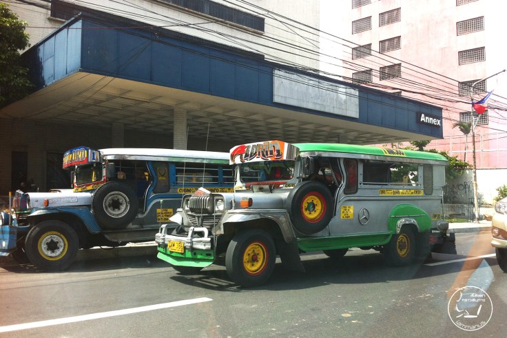 ได้เห็นตัวเมืองนิดๆหน่อยๆ ตอนนั่งรถไปร้านอาหาร ย่านชุมชนจะคนเยอะ รถเยอะ รถติดสูสีกรุงเทพฯ แม้ไม่ได้เที่ยวแต่อย่างน้อยก็ได้เจอ “Jeepney” อันเป็นสัญญลักษณ์ของฟิลิปปินส์ เจ้าจี๊ปนี่ย์เนี่ยเทียบได้กับสองแถวบ้านเรานั่นแหละ แต่มันตกแต่งสวยงามและมีที่มาอิงกับเรื่องราวทางประวัติศาตร์