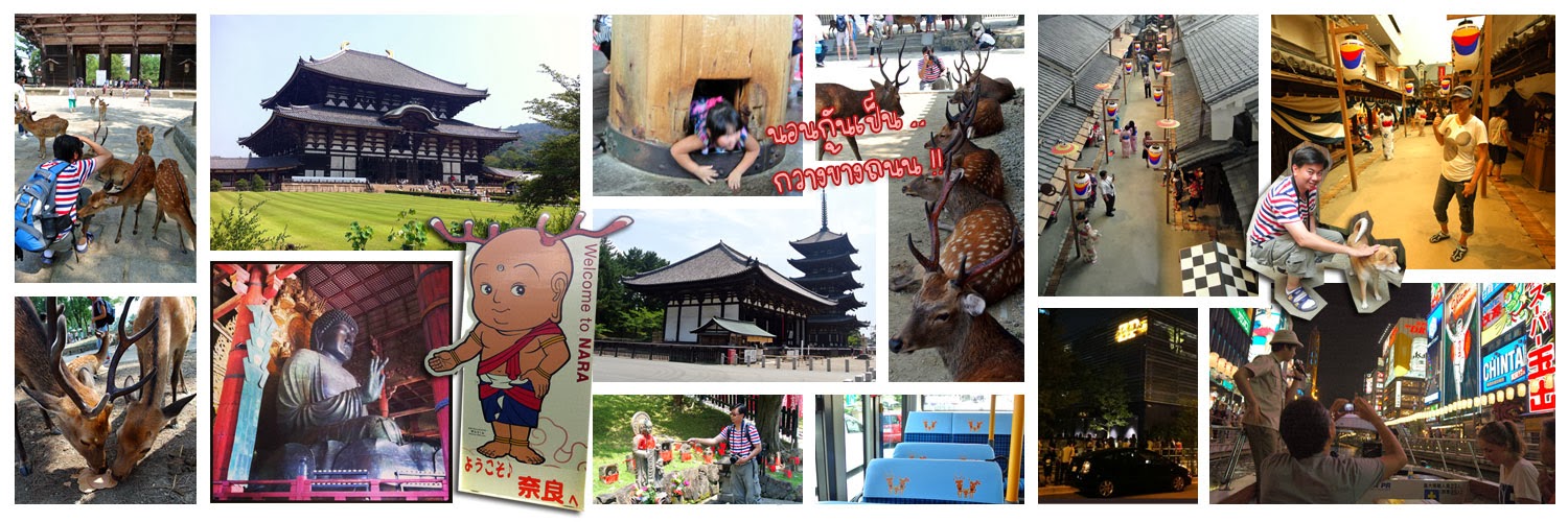 - Todaiji Temple วัดที่มีพระไดบุทซึองค์ใหญ่ที่สุดของญี่ปุ่นที่อยู่ในร่ม ทางเดินไปวัดจะผ่านสวนสาธารณะที่เต็มไปด้วยกวาง