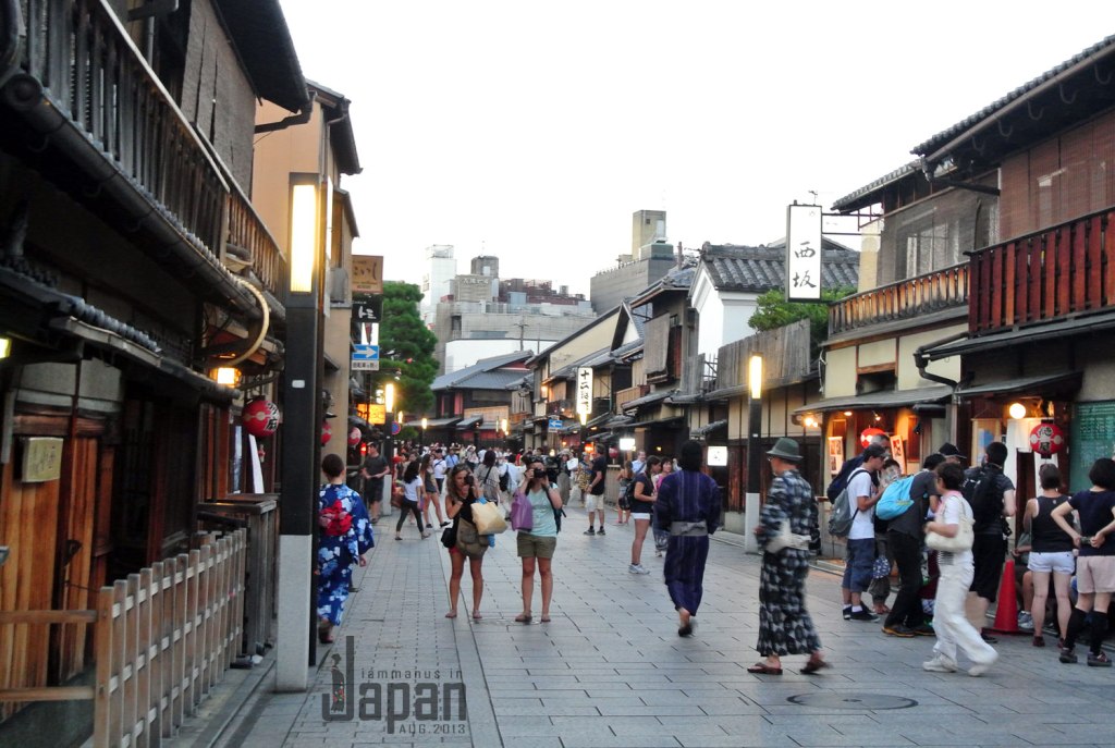 - Gion กิอง เป็นย่านร้านค้าที่ยังคงอนุรักษ์ไว้ มีร้านอาหารมีบาร์ญี่ปุ่น ที่ยังมีไมโกะคอยดูแลต้อนรับแขก คนนิยมมาเดินตอนเย็นๆถึงค่ำ