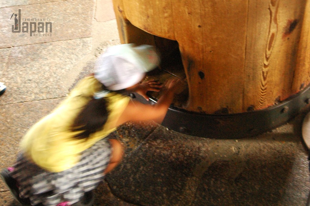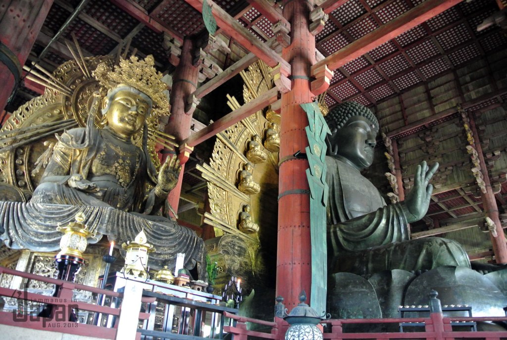 พระไดบุทซึองค์นี้หน้าตาจะคล้ายๆกับที่วัด Kotokuin เมือง Hase ที่เราไปเมื่อวันแรกๆของทริป แต่ที่นี่จะอยู่ในอาคาร เลยได้ชื่อว่าพระใหญ่ที่สุดในญี่ปุ่นที่อยู่ในอาคาร (เอากะเค้าซิ พระใหญ่ไดบุทซึองค์ที่เมือง Hase ถือเป็นพระใหญ่ที่สุดแบบกลางแจ้ง 55) เข้าไปเดินดูด้านใน นอกจากองค์พระแล้ว ที่ใครๆมาดูอีกก็คือโพรงในเสาอาคาร นัยว่าเสาอาคารนี้เป็นเสาไม้ใหญ่มากหลายคนโอบจนเมื่อเป็นช่องแล้วเด็กสามารถลอดได้เลย ก็เลยกลายเป็นว่าใครมาก็ต้องมาลอดเพื่อเป็นสิริมงคล (มั๊ย) แต่คงได้เฉพาะเด็กกับผู้หญิงตัวเล็กหน่อยนะ คนตัวใหญ่อย่าได้ไปอธิษฐานเสี่ยงทายแล้วพยายามลอดรูกะเค้าเลยนะ ติดคาอยู่จะอายเค้า
