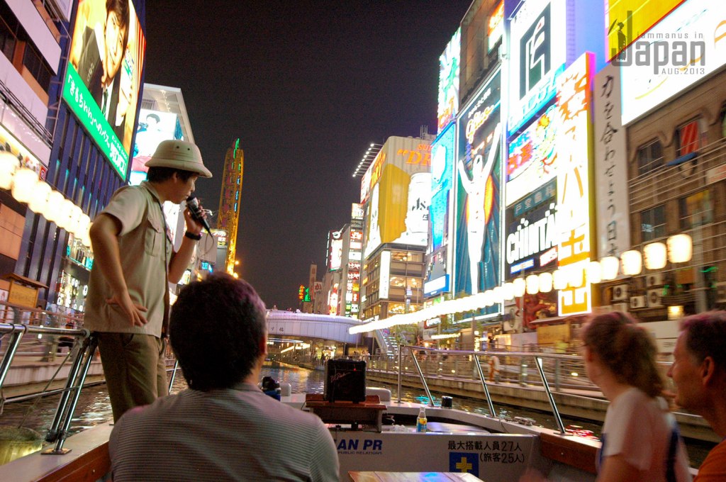 จบคอนฯไม่ดึก กลับที่พักล้างหน้าล้างตา คืนนี้เดินไปเก็บตกรายการท่องเที่ยวอีกหน่อย ไปนั่งเรือล่องคลอง Tombori ดูตึกตามรายทาง เรือออกเป็นรอบๆ เอาคูปองไปแลกตั๋วเรือได้ที่จุดแลกตั๋วดูตามในคู่มือ คนอธิบายความบอกพูดอังกฤษได้ แต่ฮีไม่ค่อยจะพูดเลย พอดีฝรั่งที่ลงเรือพร้อมกันดันพูดญี่ปุ่นได้ พี่ไกด์เรือเลยพ่นแต่ญี่ปุ่น เค้าฟังไม่รู้เรื่องเลย ชิส์! นั่งครบรอบมาจอดที่เดิมใช้เวลาสัก 20 นาที ขึ้นมากำลังหิว หาข้าวกินแถวนั้น จิ้มๆไปร้านนึงพอกินได้ อิ่มแล้วเดินเล่นช็อปปิ้งต่ออีกหน่อยเป็นการสั่งลา พรุ่งนี้จะกลับแล้ว