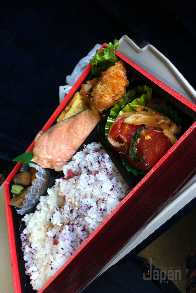 กลับมาที่สถานี Ueno ก็หน้ามืดเพราะหาตู้ฝากกระเป๋าไม่เจอ คือว่าขาไปออกจากชานชาลาทิศนึง ขากลับมามันเป็นชาชาลาอีกทิศนึง เดินวนจนหน้าซีด – -“ สุดท้ายถามพี่รปภ.ที่ทำหน้าเอือมๆชี้ทางให้แบบงงๆ ต้องดูที่ตั๋วดีๆว่าเราฝากตู้ที่อยู่ด้านทิศไหนประตูอะไร จัดแจงลากกระเป๋ามาได้ ก็เริ่มออกหาข้าวกล่อง เพื่อเอาขึ้นไปกินบนชินคันเซน เพราะนี่ก็ใกล้เที่ยงแล้ว นับว่าตัดสินใจถูกที่ซื้อซะที่ Ueno เพราะพอไปถึงสถานีโตเกียว คนมหาศาลล้านแปด ซื้ออะไรยากเย็น คิวยาว เราเลยลากกระเป๋าไปรอรถ Hikari 471 สบายๆ คราวนี้เราไม่ได้จองดังนั้นให้ดูป้ายไฟวิ่งบอกเวลากับชานชาลารถว่ารถเราตู้ไหนเป็น Non-reserve จากนั้นก็มองตามพื้นชานชาลาตรงช่องที่เค้าเว้นไว้เป็นทางขึ้นประตูรถไฟ มันจะเขียนบอกว่าตรงนี้โบกี้เท่าไหร่ เลือกเอาตามสะดวก ลากกระเป๋าไปรอได้เลย ถ้าไม่ซวยมาเทศกาล รถมันไม่เต็มหรอก ถ้าจะเอาแน่ใจต้องไปจองที่นั่งก่อนที่สำนักงาน การจองจะเสียเงินนิดหน่อย ก็ไม่รู้จะเสียทำไม เพราะเวลาเราก็ไม่แน่นอน เที่ยวไปเรื่อยๆจะไปตอนไหนก็กด Hyperdia ดูเวลาขบวนใกล้สุดก็ไปรอ