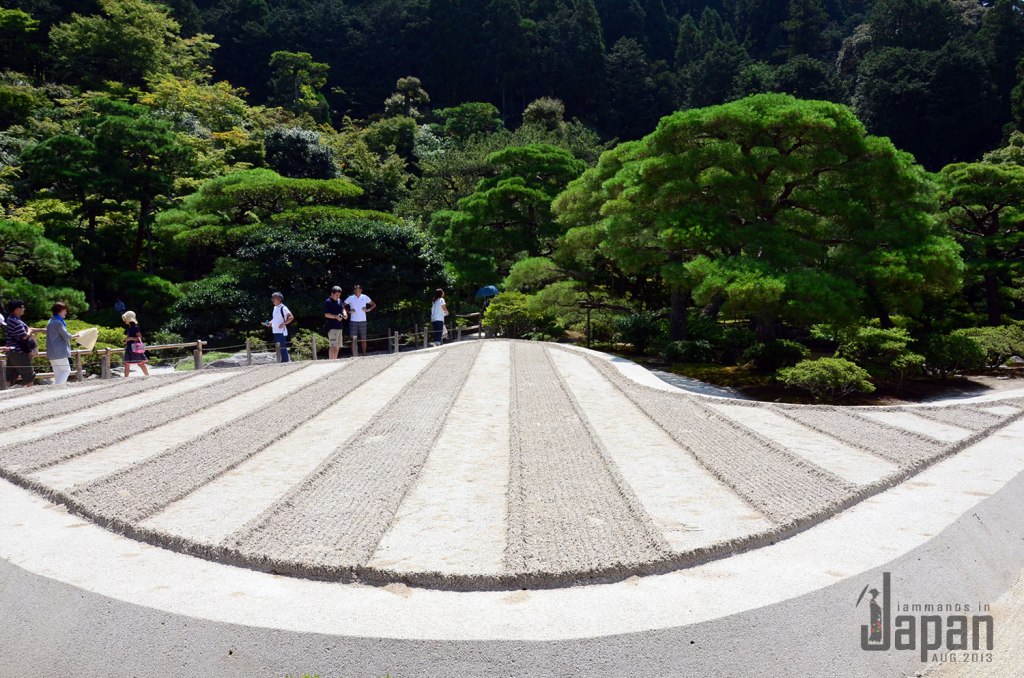 ลงมาแล้วมองหาป้ายเดินเข้าวัดเงิน (Ginkakuji Temple) ซึ่งเราหาไม่เจอ ต้องถามลุงข้างทาง ทำให้รู้ว่าสำเนียงภาษาญี่ปุ่นเรามันห่วยแตกสิ้นดี เพราะลุงพยายามจะให้เรานั่งรถเมล์กลับไปวัดทอง กร๊ากกก คินคากุจิ กับ กินคาคุจิ ออกเสียงต่างกันนิดเดียวเถอะ! สุดท้ายก็เดินๆเข้าไป ถามไป 3 ป้า ก็โผล่เข้าซอยที่ถูกต้องจนได้ มันถูกต้องแน่แท้ เพราะนักท่องเที่ยวเดินกันขวั่กไขว่ มีร้านขายของขายขนมตลอดรายทาง เดินขึ้นเนินไปเรื่อยๆ ก็ถึงทางเข้าวัดเงิน เดินไปตามทางมีลุงนำทางพ่นภาษายุ่นที่เราฟังไม่รู้เรื่อง เดินผ่านศาลาที่มีทรายกองเป็นลานๆไปก็พาแยกขึ้นด้านซ้าย ไต่เขาไปชมวิวโน่นนี่นั่น วนลงทางขวา ถึงได้เจอตัวตำหนักวัดเงิน อย่าตกใจที่มันไม่เงิน เพราะมันสร้างไม่เสร็จยังไม่ทันหุ้มเงิน แต่ในเมื่อตั้งใจจะหุ้มเงินเค้าก็เลยเรียกกันว่าวัดเงิน มาถึงใกล้เที่ยงแล้ว แสงไม่สวยแล้วล่ะ ถ่ายรูปมานิดหน่อยเป็นการพักเหนื่อย มองไปรอบๆก็พบว่ามีทางเดินเลี้ยวมาจากตรงลานทรายนั่นได้เลย ไม่ต้องปีนบันไดขึ้นด้านบน ซึ่งเราว่าไม่มีอะไรน่าสนใจ ตอนเดินเห็นบางคนเลี้ยวไปล่ะ แต่เราเชื่อลุงเลยเสียเหงื่อไปหลายปี๊บอยู่ ออกจากวัดเลยเสร็จป้าขายไอติมชาเขียว เล่นดักหน้าวัดเลยป้า
