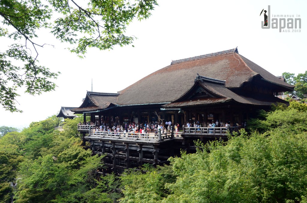 แต่ก็มีนักท่องเที่ยวที่พลาดแบบเราประปราย ทั้งไทย ฝรั่ง จีน ญี่ปุ่น แห้วแล้วเลยเดินต่อไปอีกนิดลงรถไฟใต้ดินไป ยอมเสียเงินบัตร Pasmo 210 เยน ไปลง Higashiyama เพื่อไปต่อรถบัสด้วยว่าเหนื่อยและร้อนขี้เกียจเดินไปป้ายรถเมล์ซึ่งไกลกว่าและต้องต่อ 2 ต่ออยู่ดี ต่อรถบัสสาย 100 ไปวัดคิโยมิกัน Kiyomisu-Dera หรือวัดน้ำใส นี่ถือเป็นวัดดังของเกียวโต เค้าว่าศักดิ์สิทธิ์มาก จุดฮิตคือน้ำ 3 สาย ที่เค้าบอกกันว่าแต่ละสายเป็นน้ำมนต์เกี่ยวกับเรื่องต่างๆกัน เช่น สุขภาพ ความรัก การงาน ซึ่งเราไม่รู้แหละว่าสายไหนเป็นอะไร ส่วนมากเค้าตักกันสายเดียว ไหนๆเรามาไกล ต่อคิวตั้งยาวเล่นมัน 3 สายเลยนะ สาธุ