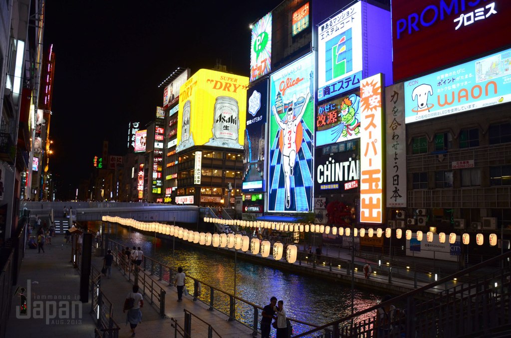 จบ 3 วัด แห้ว 1 วัง ก็นั่งรถเมล์เบอร์ 100 กลับโตเกียวสเตชั่น ไปเอากระเป๋าที่ฝากไว้ที่รร.ลากข้ามมาสถานีต่อรถชินคันเซนไปโอซาก้ากัน หรือจะนั่งรถไฟธรรมดาก็ได้มีหลายขบวนเลย เรามี JR pass แล้วนั่งชินคันเซนสบายๆเร็วๆดีกว่า ยังไม่ทันหลับน้อง Hikari ก็พาเรามาถึงโอซาก้าในเวลา 14 นาที สถานีใหญ่โตวุ่นวาย อย่าได้กลัวเดินตามป้ายที่เราหาข้อมูลมาจาก Hyperdia เลย ไปรถสายไหน มันอยู่ชานชาลาไหนเดินไปอย่างมั่นใจค่ะ เราจะไปเช็คอินรร.ที่ย่านนัมบะ ต้องต่อรถหน่อย แต่ก็สะดวกมีบันไดเลื่อน มาถึงนัมบะ แล้วหลงทิศค่ะ เป็นการหลงทิศที่น่าละอายมาก ทั้งที่ exit ที่ออกมาใกล้โรงแรมนิดเดียวแต่เลี้ยวผิดเลยพาวนอยู่ 4 แยกจนเหนื่อยใจ สุดท้ายต้องพึ่ง GPS นำทาง ถึงจนได้ในที่สุด