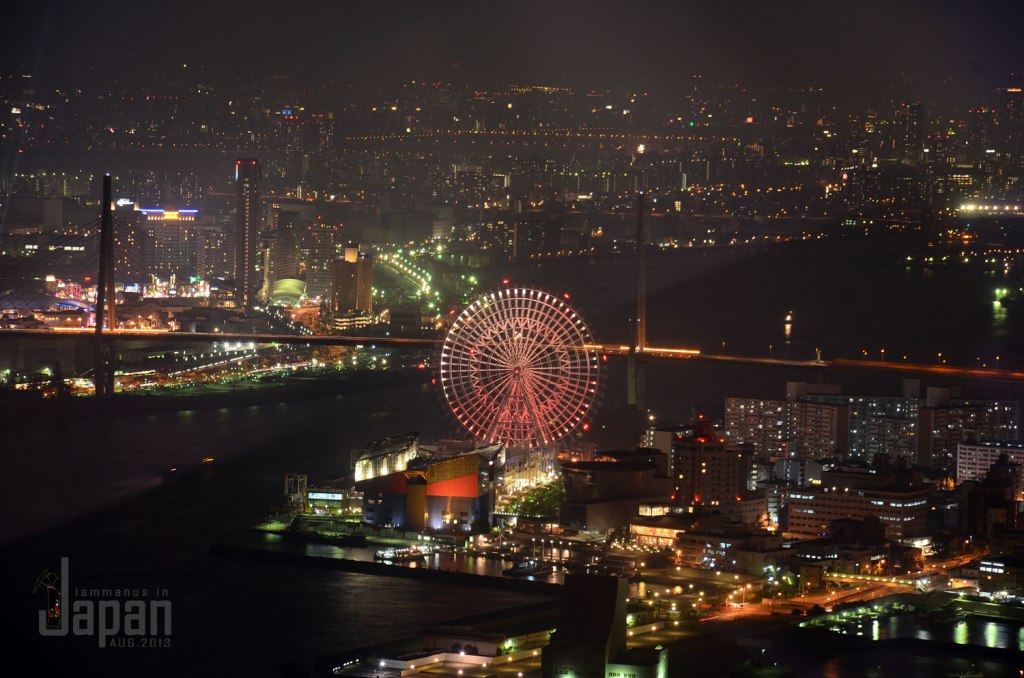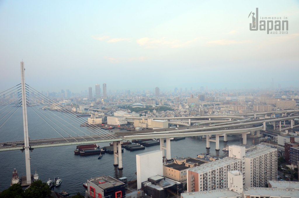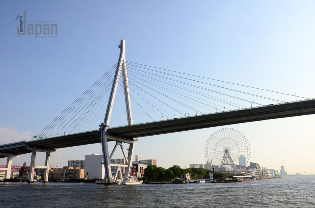 ออกจากปราสาทดูเวลาแล้วว่าจะไป Tempozan จะไปนั่งเรือ Santa maria ล่องอ่าว ในคู่มือบอกปิด 4 โมงเย็น กว่าจะนั่งรถไฟไปถึงเหลืออีกไม่ถึง 10 นาที อันว่าเวลากะญี่ปุ่นนี่มันเป๊ะๆนะ ไม่อยากพลาดเลยวิ่งซะลิ้นห้อย ไปทันเรือออกพอดี แต่เหงื่อโทรม ต้องไปต่อแถวซื้อน้ำมากินดับร้อน ไปยืนรับลมอยู่พักใหญ่ เรือล่องอ่าวประมาณ 45 นาที ผ่านสะพานหลายอันมาก อิอ่าวนี้มันสะพานเยอะจริงๆ แต่ละอันก็ออกแบบให้แตกต่างกันนะ สะพานขึงบ้าง แขวนบ้าง ปูนบ้าง เหล็กบ้าง แค่ถ่ายรูปสะพานในมุมต่างๆก็เพลินล่ะ 45 นาทีกลับมาที่ท่าเดิม อุต๊ะ…มีคิวคนมายืนรอขึ้นเรืออีกล่ะ ไหนว่าหมด 4 โมงเย็น วิ่งแทบตาย! เสียดาย ถ้าลงเรือเย็นๆกว่านี้น่าจะแสงสวย