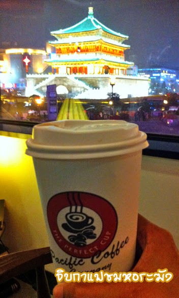 ยังไม่ดึกมาก เลยยังมีเวลาเลยเดินเล่น ชมแสงสียามค่ำ ชาวซีอานออกมาเดินเล่นกันคึกคักเต็มลานไปหมด ตั้งแต่หอกลองไปยันหอระฆังเลย เดินเล่นชมเมืองถ่ายรูป ไปจนถึงหอระฆังแวะเข้าร้านกาแฟมุมดี นั่งจิบกาแฟชมวิวหอระฆัง ก่อนกลับไปนอน เตรียมลุยถ้ำหลงเหมินวันพรุ่งนี้