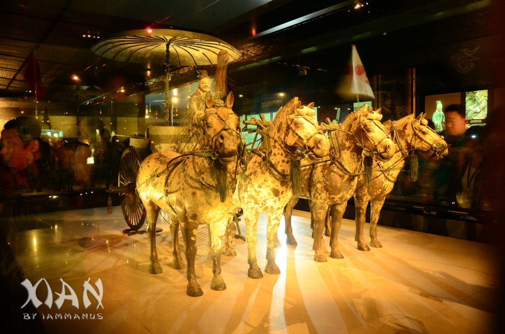 จากนั้นค่อยไปอาคารต่อๆไป ไปอาคาร 2 มีส่วนขุดค้นที่เห็นหลังคาอาคารด้วย แสดงว่ามันถูกฝังกลบไว้ลึกมาก การเจอสุสานนี่ก็เพราะชาวนามาขุดแล้วเจอหุ่นปั้นต่างๆเลยไปแจ้งทางการ จากนั้นก็เลยขุดค้นกันใหญ่ แต่สุดท้ายก็ไม่กล้าขุดต่อเยอะ เพราะยิ่งขุดออกมาดินฟ้าอากาศทำลายของที่ขุดขึ้นมา เช่นหุ่นทหารนี่ตอนขุดขึ้นมามันลงสีสวยงาม แต่พอมาเจออากาศสีก็ซีดหายไปเลย ของบางอย่างก็ผุกร่อนลงไป เลยต้องชะลอกัน ค่อยๆขุดค่อยๆหาวิธีกันไป หลุมที่ 3 จะเล็กแต่มีหุ่นสวยงามใช้ได้ มีม้าเยอะด้วย แต่ที่ฮิตสุดๆก็อยู่อาคาร 1 ที่เป็นอาคารใหญ่สุด มีตุ๊กตาทหารยืนเรียงเป็นแถวที่ใครๆก็คงเคยเห็น การถ่ายรูปให้ได้สวยต้องใจเย็นๆ เพราะใครๆก็อยากถ่ายรูปมุมเด็ดๆ ก็ต้องรอจังหวะและอย่าแช่นานเกิน เห็นใจคนอื่นบ้าง ควรมีขาตั้งกล้อง แต่มักมีจนท.เดินมาห้ามกางขาตั้ง แต่พอเราหุบขาใช้เป็นแบบโมโนพอดกลับไม่ว่าแฮะ งงจริงๆ