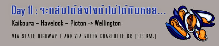 วันนี้เป็นวันสุดท้ายในเกาะใต้แล้ว เดี๋ยวเย็นนี้จะข้ามเฟอร์รี่ไปเกาะเหนือ เพื่อไปเวลลิงตัน ไปเยี่ยมเยือนแฟมมิลี่ที่น้องเจี๊ยบเคยมาอยู่ด้วยเมื่อเป็นนักเรียนแลกเปลี่ยน คือมันนานมากกกแล้วแต่ชียังติดต่อกันอยู่ น่ารักจริงๆเลย ก่อนจะลาเกาะใต้ ภาระกิจสุดท้ายที่หมายมั่นว่าต้องทำให้ได้คือ กินหอยแมงภู่นิวซีแลนด์ ที่แหล่งดังเมือง Havelock ที่ใครๆก็ไปแวะกินกันหากมาแถบ Marlborough