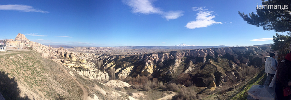 วันสิ้นปีนี้ฟ้าสดใสดีแท้ แม้จะอารมณ์หม่นหมองเล็กๆที่พลาดการขึ้นบอลลูน แต่คิดในแง่ดีว่า ทำให้มีเป้าหมายจะมาใหม่ในอนาคต (555 ดีเหรอ?) ระหว่างนั่งรถออกไป ยังรู้สึกขุ่นเคืองเล็กๆเพราะมองบรรยากาศโดยรอบก็ดูอากาศดี ทำไมบอลลูนไม่ขึ้น! แงๆ ต้องงัดกล้องมาถ่ายรูปเล่นจะดีกว่ามัวแต่หงุดหงิด ระหว่างทางจะมีวิวแปลกๆตาให้ถ่ายรูปอยู่ แสงยามเช้าสวยดี เพียงแต่ต้องตั้ง ISO สูงๆสักหน่อย ตั้ง Speed สูงๆ เพราะรถวิ่งเร็วใช้ได้ ไม่งั้นภาพภูเขาแถบคัปปาโดเจียอันแปลกตาจะเบลอเสียจนเป็นเพียงภาพวิญญาน