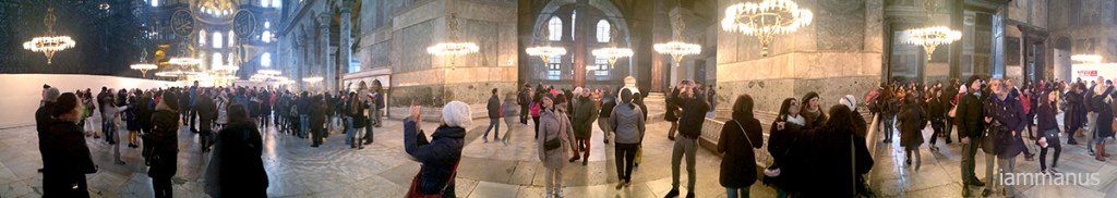 ออกจากสุเหร่าสีน้ำเงินแล้ว เดินไปฝั่งตรงข้าม เพื่อเข้าดู โบสถ์เซนต์โซเฟีย ไปดูซิว่าอันไหนสวยกว่ากัน กว่าจะข้ามไปถึงก็ใช้เวลาพอสมควร ไม่ได้เพราะว่าไกลหรอก แต่ทุกคนมัวแต่ถ่ายรูป หันหน้าหันหลังถ่ายกันใหญ่ คือมันมุมบังคับนะ ทุกคนมาต้องถ่าย 555 กว่าจะต้อนทั้งหมดไปถึงฝั่งโน่นได้เล่นเอาอาเหม็ดเหงื่อแตก 555