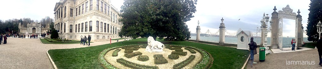 เดินชมข้างในจบ ออกมาชมด้านนอกบ้าง เริ่มเสียใจล่ะที่ไม่มีแดด แถมอาการเหมือนฝนจะลงอีก ลมแรงมากๆเพราะวังนี้ตั้งอยู่ริมช่องแคบบอสฟอรัสเลย ทะเลซัดโครมๆ แม้สวนจะสวยแต่แดดไม่มีและลมหนาวยะเยือกเลยต้องรีบๆเดินกลับไปขึ้นรถ ไม่ไหวจะชิลนะวันนี้ ฝั่งตรงข้ามวังมีการก่อสร้างใหญ่ยักษ์ ได้ความว่าเป็นสนามใหม่ของเบซิกตัส แหม่…สร้างตรงข้ามวังกันเลย
