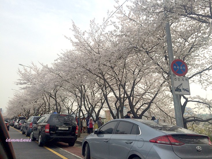 ดอกซากุระที่เกาหลีนี่จะสีซีดๆไม่ชมพูหวานจ๋อยเหมือนญี่ปุ่น เดินไปจะเห็นขาวๆฟูเต็มข้างทางไปหมด แถบยออิโดนี่สวยงามมากๆ เดินกันได้ยาวๆตามริมแม่น้ำ ไปวันแรกไม่ได้ไปเดิน ได้แต่นั่งรถผ่าน มันสวยงามจริงๆ