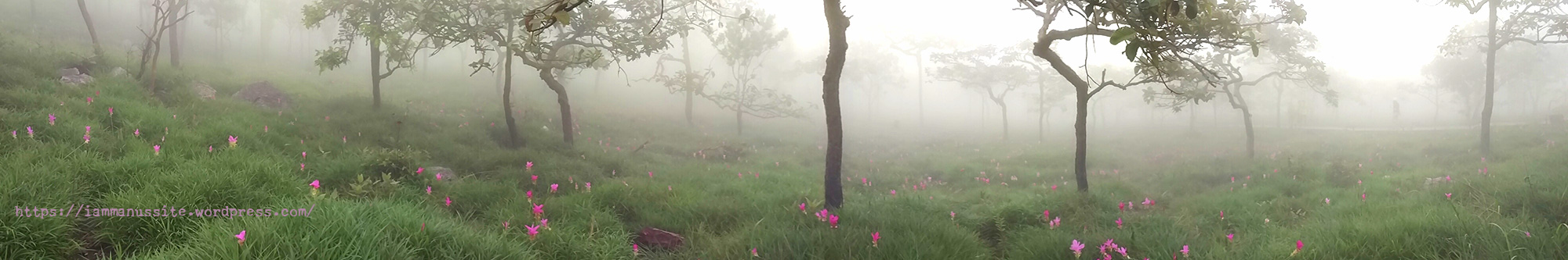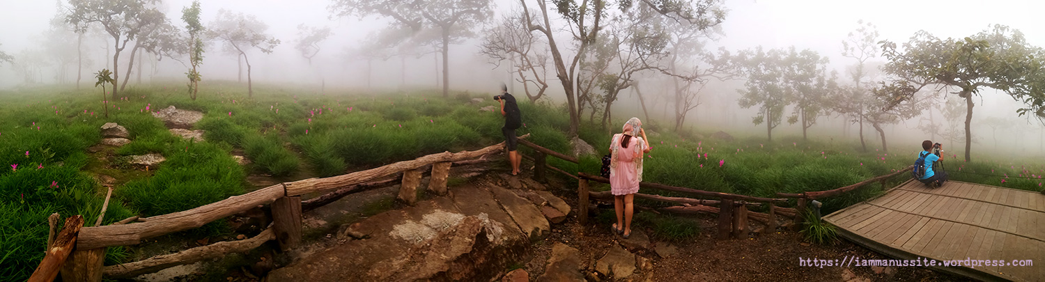 การมาตอนเช้าๆจะได้บรรยากาศดอกกระเจียวท่ามกลางหมอกแบบนี้ และอากาศไม่ร้อนด้วย แต่ก็จะไม่ได้ภาพวิวตรงสุดแผ่นดินเพราะหมอกจะขาวฟุ้งไปหมด เดินเล่นถ่ายรูปจนสายๆค่อยไปดูวิวตรงสุดแผ่นดินก็ได้ ฟ้าน่าจะเปิดมองเห็นวิวได้มากขึ้น (คราวนี้ไม่ได้ไป รีบไปเดินลานป่าหินงามแทน กลัวสายมากจะร้อน)