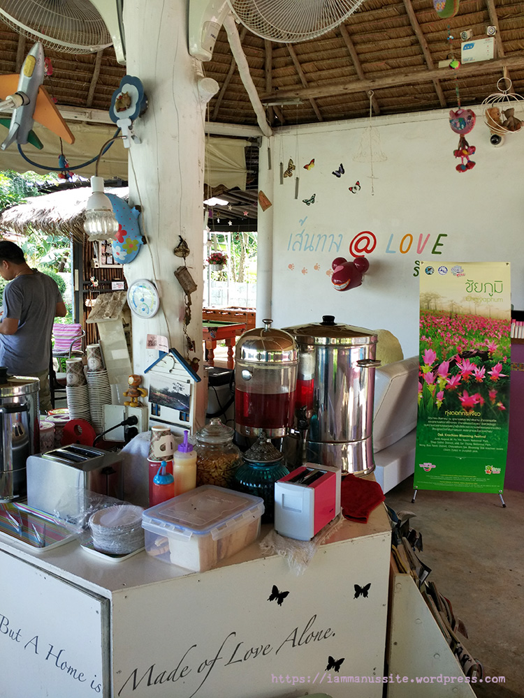 ไม่ได้ค่าโฆษณาใดๆนะ แต่อยากเล่าว่าถูกใจที่นี่ มันเป็นการยากพอควรนะกับการที่เจ้าของจะดูแลรักษาสถานที่ให้สวยงามได้ตลอดเวลา ในสถานที่ท่องเที่ยวที่ขายได้แค่ช่วง 1-2 เดือน คนจะมาเทพสถิตย์ก็คงมาดูดอกกระเจียวซึ่งก็บานแค่ช่วงหน้าฝน ช่วงเข้าพรรษา ไม่มีที่เที่ยวอื่นมากมาย ฤดูอื่นๆคนคงน้อย ค่าที่พักไม่ใช่หลักร้อย หลักพันต้นๆ แต่ความสวยงาม ความสะอาด ความสบาย เรารับได้ มีชากาแฟขนมน้ำดื่ม ให้บริการฟรีตลอดเวลาที่ส่วนกลาง บรรยากาศเหมาะแก่การพักผ่อน ไม่ใช่แค่นอนแล้วก็ไป เราจึงกลับมาทานอาหารเช้า แล้วอาบน้ำพักผ่อนนอนเล่น รับลมเย็นๆก่อนกลับ สบายตาสบายใจ ^^