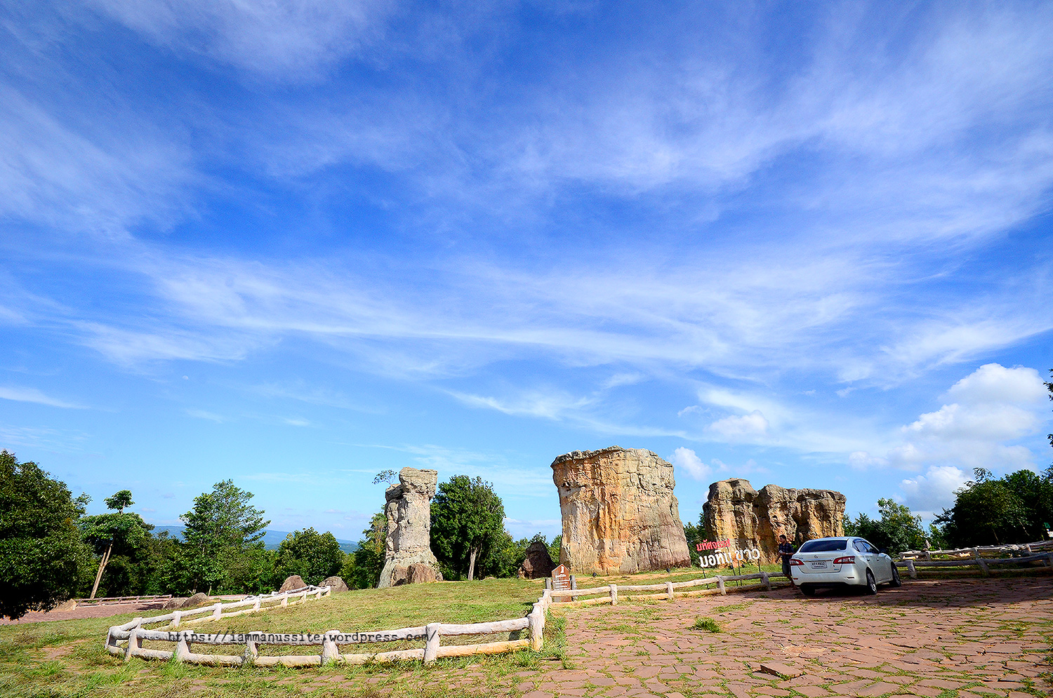จุดแรกที่ไปเที่ยวคือ ‘มอหินขาว’ อยู่ในเขตพื้นที่ อุทยานแห่งชาติภูแลนคา ตอนไปไม่เห็นป้อมเก็บเงินค่าเข้า ขับรถเข้าไปได้ถึงลานจอดข้างๆได้เลย จุดเด่นก็หินแท่งๆ 4-5 แท่งนี้ สวยงามยามฟ้าใสอย่างวันนี้