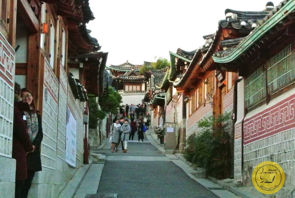 มาเกาหลีหลายครั้ง เพิ่งเคยมาย่านนี้ Bukchon Hanok Village หรือหมู่บ้านโบราณบุคชน ย่านนี้อนุรักษ์บ้านแบบเกาหลีดั้งเดิมไว้ ละครหลายๆเรื่องมาถ่ายทำที่นี่น่าจะพอคุ้นตาคอซีรีย์อยู่บ้าง ตอนนี้นักท่องเที่ยวเข้ามาเดินเที่ยวกันมากมายจนต้องมีคนยืนถือป้ายไม่ให้ส่งเสียงดังรบกวนผู้อยู่อาศัย แต่ก็ยังห้ามยาก โดยเฉพาะทัวร์กลุ่มใหญ่ๆ ตะโกนเรียกกันถ่ายรูปวุ่นวายไปหมด ใครได้ไปเดินเที่ยวแถวนั้นก็ช่วยรักษาความสงบให้เค้าด้วยนะ