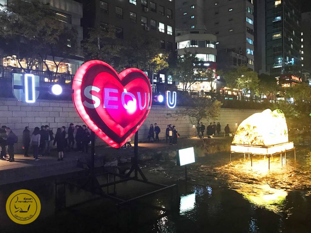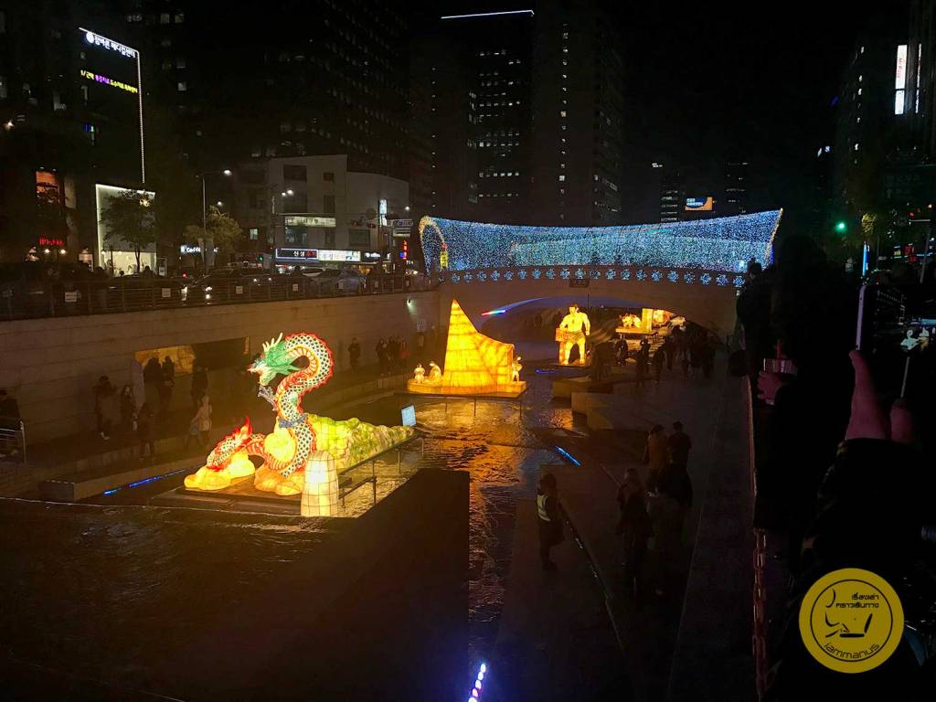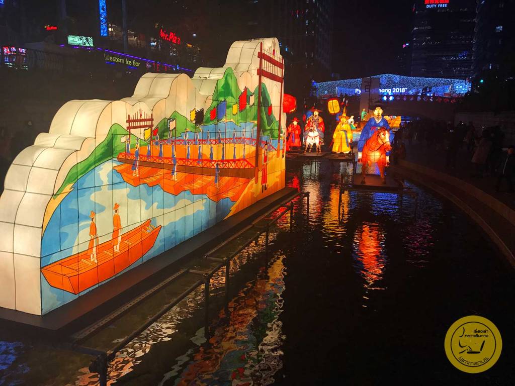 คลองระบายน้ำกลางกรุงโซล ที่ได้รับการปรับปรุงจนกลายเป็นที่พักผ่อนเดินเล่นได้ เคยมาเดิน 2-3 ครั้งแล้ว แต่ช่วงนี้มีเทศกาลโคมไฟ ประดับตกแต่งสวยงาม ต้องไปดูสักหน่อย ใครจะไปเดินเล่นตรงนี้ในหน้าหนาว ขอเตือนให้จัดเครื่องกันหนาวมาให้แน่นๆ เพราะเป็นช่องลมที่หนาวมาก ลมก็แรงและเดินริมน้ำอีก หนาวยะเยือกมากบอกเลย
