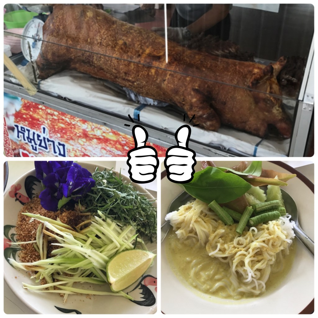 เช้าแล้ว เอาฤกษ์เอาชัยด้วยการกินหมูย่าง ขนมจีน ข้าวยำก่อนตามธรรมเนียม แล้วมุ่งหน้าไป อ.กันตัง แวะจุดแรกที่สถานีรถไฟกันตัง