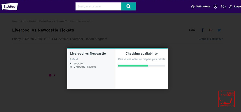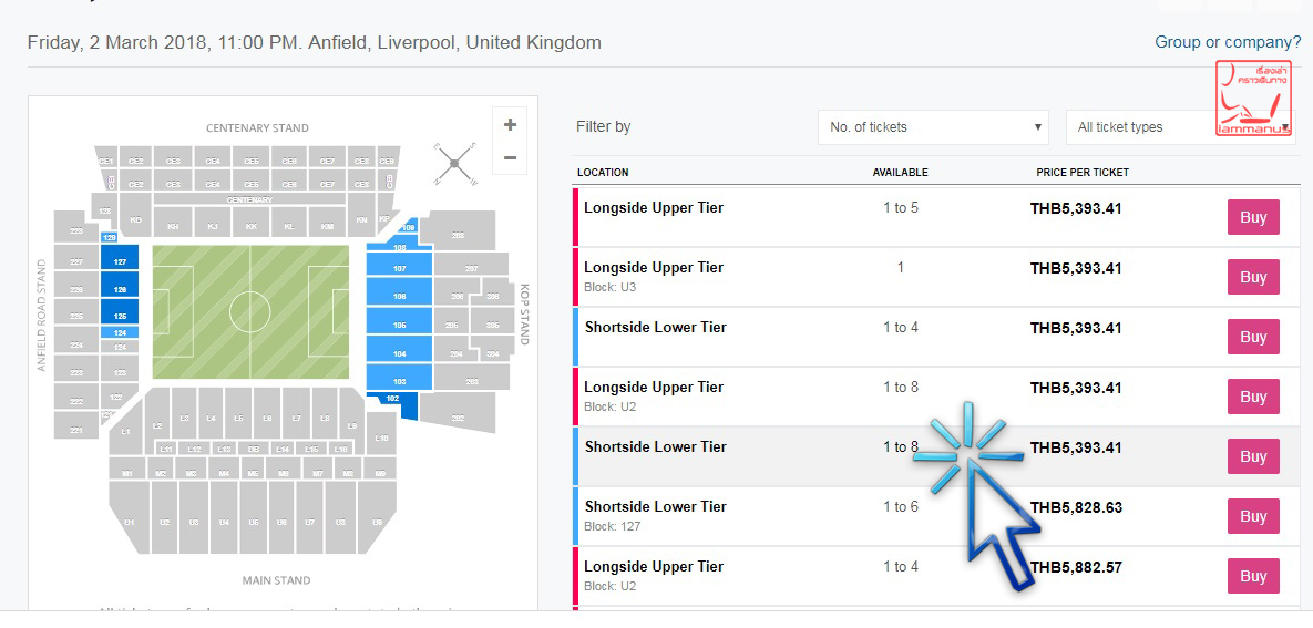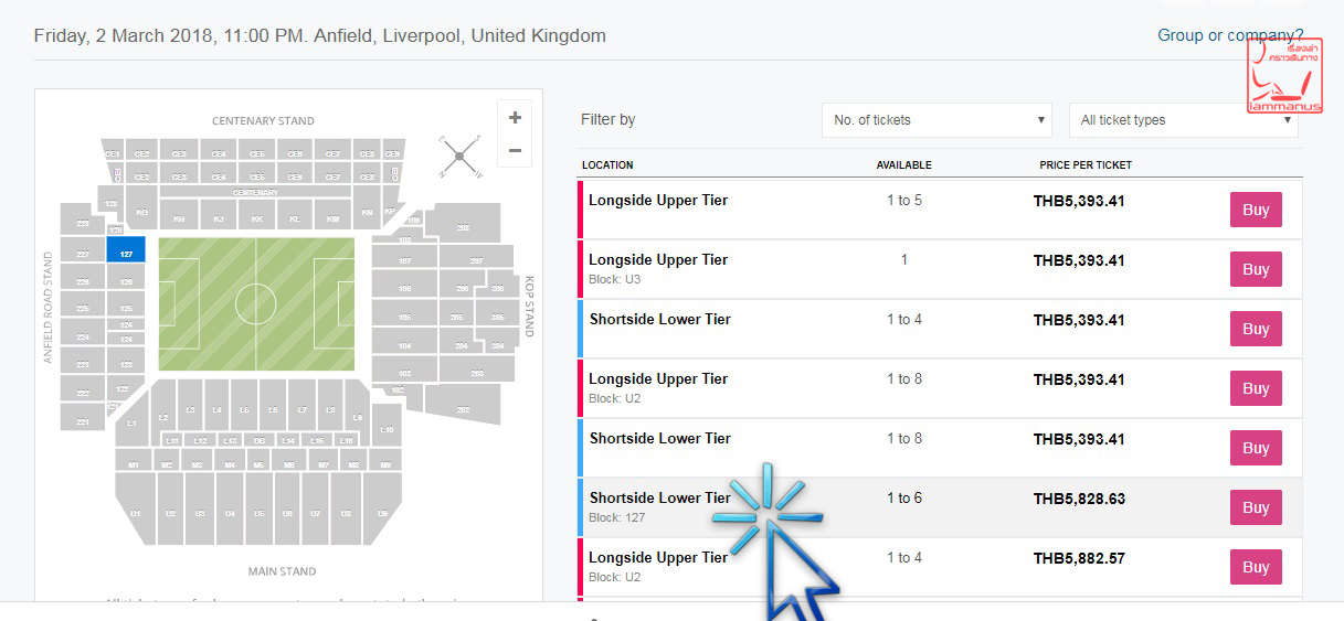เนื่องจากเราตัดสินใจจะไปดูนัด ลิเวอร์พูล-เชลซี ซึ่งเป็นนัดใหญ่แบบฉุกละหุกพอสมควร จึงไม่มีทางเลือกมากนักนอกจากต้องพึ่งพาเวปไซต์หาบัตร