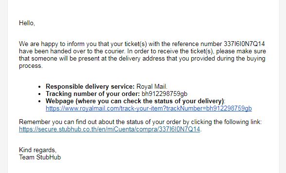 หลังจากเลือกแล้วก็เช็ครายละเอียดอีกครั้ง จากนั้นก็ทำตามขั้นตอนการจ่ายเงินไป การจ่ายเงินมีทั้งตัดบัตรเครดิตและ paypal ตั๋วที่ซื้อส่วนมากจะส่งให้เฉพาะในอังกฤษและส่งฟรี และจะส่งมาให้ก่อนวันแข่งไม่กี่วัน เพราะเจ้าของบัตรก็คงต้องใช้บัตรไปดูหรือไปปล่อยขายต่อแบบนี้ จะมีบางบัตรที่สามารถส่งมาที่เมืองไทยได้เลย แต่คุณก็ต้องเสียค่าส่ง ดังนั้นให้ส่งที่โรงแรมที่เราจะไปพักดีที่สุด ตอนกดจะจ่ายเงินมันจะมีรายละเอียดบอกเรื่องการส่งอยู่อ่านดูให้ละเอียด