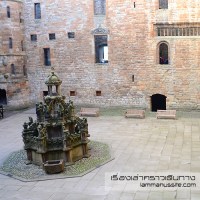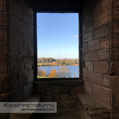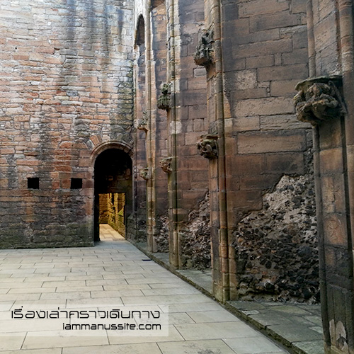 เสียค่าเข้าชมแล้วเดินเข้าด้านใน เริ่มจากห้องต่างๆที่จัดทำเป็นพิพิธภัณฑ์ เดินวนๆไปจน ออกไปสู่ตัวปราสาทโล่งๆ ห้องโถงต่างๆ เหลือแต่ผนังหิน ที่สวยประทับใจคือทิวทัศน์รอบๆ มองจากหน้าต่างบานไหนออกไปก็สวยหมด เพราะปราสาทอยู่ติดทะเลสาบ – Linlithgow Loch เดินวนเที่ยวด้านในที่เหลือแต่ผนังหินจินตนาการเอาเองว่าสมัยก่อนเป็นยังไง ก่อนจะวนกลับลงมาด้านล่าง เดินผ่านลานกลางปราสาท มีบ่อน้ำพุที่มีรูปปั้นรูปสลักสวยงาม เป็นจุดเดียวที่ดูสมบูรณ์ที่สุด