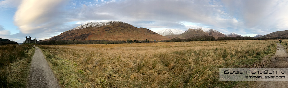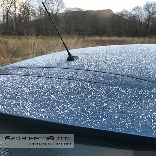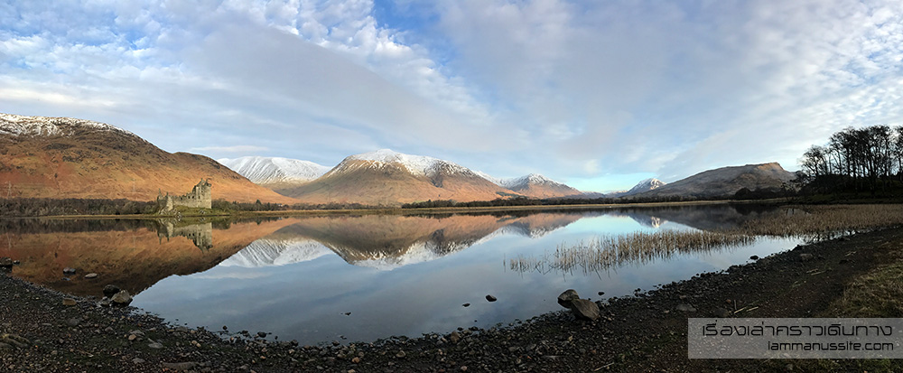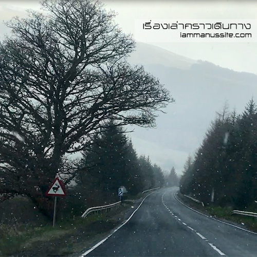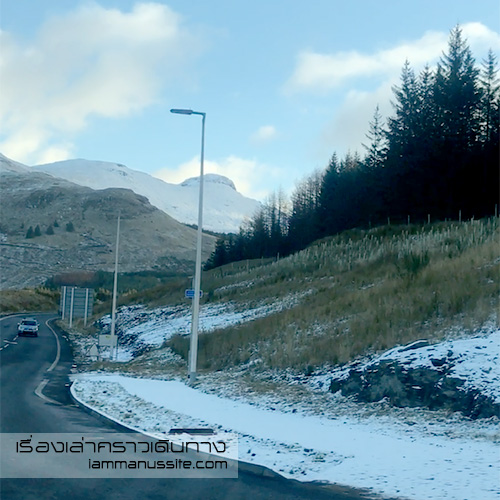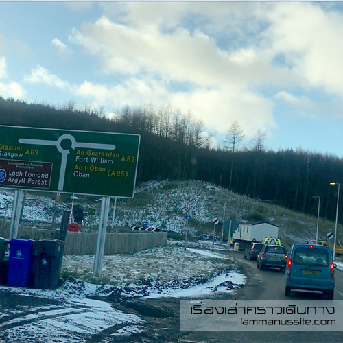 ตื่นนอนมาเช้านี้ มีโปรแกรมไปเก็บปราสาทสวยงามอีกแห่ง Kilchurn Castle กับภาพสะท้อนจากทะเลสาบทำให้พวกเราดั้นด้นมาที่นี่ ออกมาหน้าโรงแรมต้องกลับไปใส่เสื้อผ้าเพิ่มและเปลี่ยนรองเท้า เพราะออกไปเจอพื้นขาวโพลน หลังคารถก็ขาวโพลน อาจไม่ถึงกับเป็นหิมะปุยๆแต่ก็เป็นเม็ดๆบางๆ