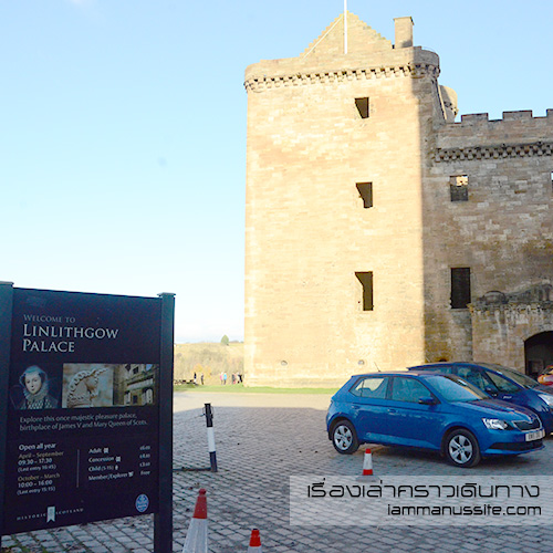 Linlithgow Palace นี่เป็นปราสาทใหญ่ขึ้นมาหน่อย ได้รับการบูรณะไว้ค่อนข้างดี เริ่มตั้งแต่ศตวรรษที่ 12 ที่มีการก่อสร้าง manor ตรงบริเวณนี้ และได้เปลี่ยนเป็นกองบัญชาการกองทัพในศตวรรษที่ 14 เป็นจุดสำคัญในเส้นทางเชื่อมต่อระหว่าง Edinburgh Castle กับ Stirling Castle ตัวปราสาทมีการก่อสร้างเพิ่มเติมหลายครั้ง มีการสร้าง The Parish Church of St Michael ขึ้นมาด้านข้างๆด้วย