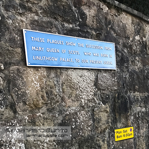 จุดหมายต่อไปคือเมือง Linlithgow เป็นเมืองบ้านเกิดของ Queens Mary เมืองนี้ค่อนข้างใหญ่ เมื่อเทียบกับเมืองที่ขับผ่านๆมา เป็นเมืองท่องเที่ยวมีป้ายแนะนำหลายจุด ใครขับรถมาให้ขับตรงเข้าไปตัวปราสาทเลย มีที่จอดรถด้านข้างโบสถ์ เราไม่รู้เลี้ยวไปจอดที่ลานจอดก่อนถึงปราสาทหน่อยนึง เสียเวลาหยอดเหรียญค่าจอดรถกับป้าๆอีก 2-3 คันอยู่พักนึง เพราะตู้หยอดมันเสีย ป้าต้องไปวิ่งวุ่นหาเจ้าหน้าที่ เป็นบ้านเราก็คงเดินกันไปตัวปลิวล่ะ คนที่นี่เค้าซื้อสัตย์กันดีอยู่ ทั้งๆที่ไม่มีไม้กั้นอะไรเลย กล้องก็ไม่มี ถ้าไปจอดตรงปราสาทเลยฟรี