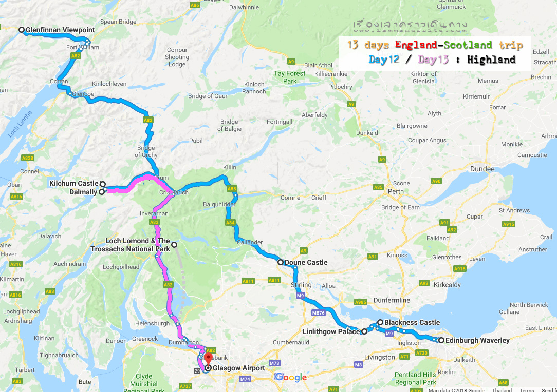จาก Glenfinnan ตั้งใจไปนอนที่ Dalmally เพราะพรุ่งนี้ตอนบ่ายๆเราต้องไปขึ้นเครื่องกลับเมืองไทยจาก Glasgow จึงต้องหาที่นอนให้ใกล้ที่สุด