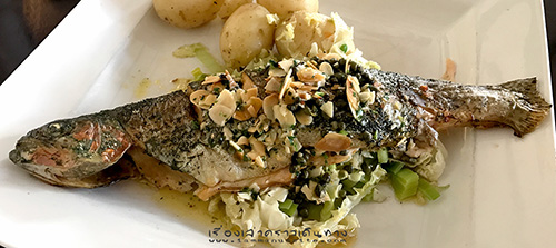 Bibury Trout มีชื่อเสียงมาเนิ่นนาน เพราะที่ Bibury มีฟาร์มปลาเทร้าท์ ที่นักท่องเที่ยวเข้าไปเที่ยวชมได้ จะลองจับปลาเทร้าท์ด้วยตัวเองก็ได้ ร้านอาหารมีเมนูปลาเทร้าท์ เค้ก ชา กาแฟ เช็ครายละเอียดและวันเวลาของฟาร์มก่อนไป เพราะไม่ได้เปิดทั้งปี ฺBibury Trout Farm ถ้าไม่เข้าฟาร์มก็เลือกทานอาหารในเมืองร้านไหนก็ได้ แต่อย่าลืมชิมเมนูปลาเทร้าท์ ร้านที่เราแวะทานเที่ยง คือร้านในเมือง The Catherine Wheel ที่เป็นทั้งที่พักและร้านอาหาร อร่อยใช้ได้