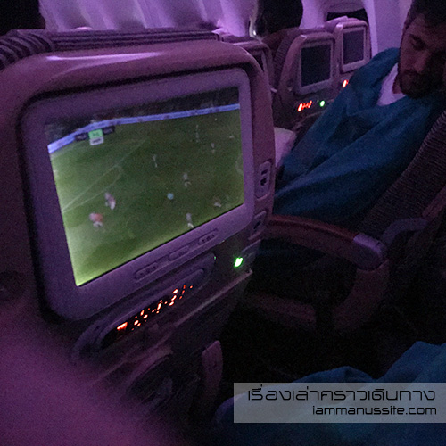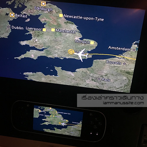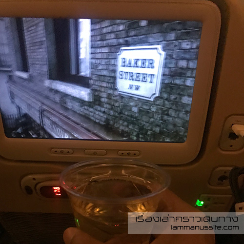 ที่นั่งถือว่าใช้ได้ มีจอทีวีแยก ไปลอนดอนทั้งทีก็เปิด เชอร์ล็อค โฮมส์ เรียกน้ำย่อยไปก่อน แถมบินวันเสาร์มีฟุตบอลพรีเมียร์ลีคให้ดูด้วย (เฉพาะคู่แมนเชสเตอร์ซีตี้ที่ Etihad เป็นสปอนเซอร์นะ ดีเลย์กว่าเวลาจริงไม่เกิน 1/2 ชม.) อาหารก็ใช้ได้ กินอิ่มนอนหลับ รับได้