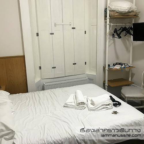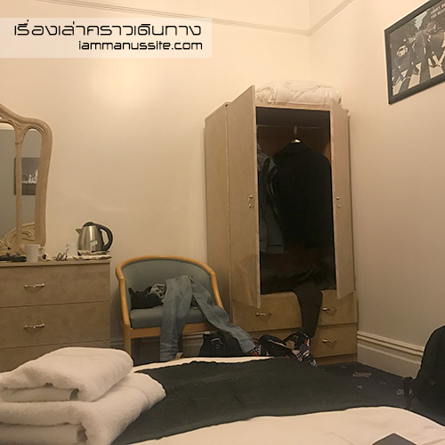 จองผ่าน booking.com เลือกที่นี่เพราะอยู่ใกล้สถานีรถไฟ/รถไฟใต้ดิน Paddington และราคาอยู่ในงบ ห้องพักธรรมดามาก ห้องนอนแคบ ห้องน้ำแคบ แต่โดยรวมก็นอนได้อุ่นสบาย ไม่มี Complimentary อะไรเลยแม้แต่น้ำสักขวด ไม่มีที่เป่าผม ไม่มีกาต้มน้ำ ไม่มีรองเท้าในห้อง แพงสมเป็นที่พักในลอนดอน เป็นบ้านสไตล์อังกฤษแท้ๆที่เอามาทำที่พัก ไม่มีลิฟต์แบกกระเป๋าขึ้นไปนะ อาหารเช้าในห้องอาหารชั้นใต้ดิน พอใช้ได้กินอิ่ม บริเวณโดยรอบมีร้านอาหาร ร้านขายของ สะดวกมาก อยู่แถบนี้ไม่อดตายแน่นอน