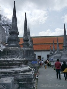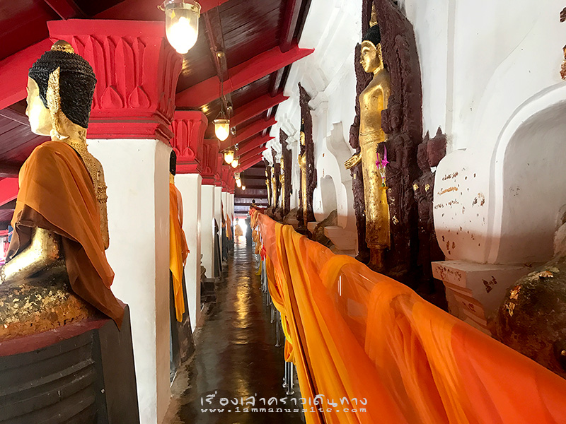 หากยังมีเวลาอีกก็เดินตามระเบียงคตรอบพระบรมธาตุเจดีย์ ชมพระพุทธรูปปูนปั้นนั่ง อยู่รอบระเบียงมีทั้งหมด 173 องค์เป็นฝีมือช่างปั้นสมัยอยุธยาและรัตนโกสินทร์
