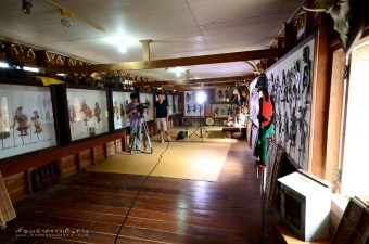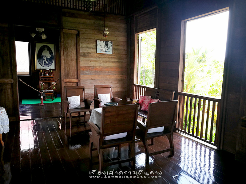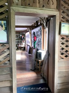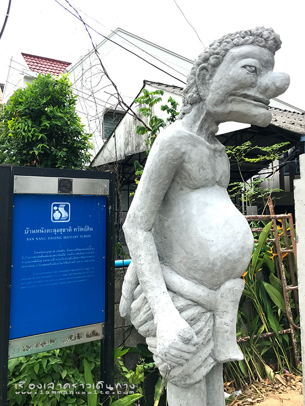 แรกเดินเข้าไปในบริเวณบ้านหนังตะลุง เหมือนเดินเข้าไปเที่ยวบ้านญาติ ที่ร่มรื่นด้วยต้นไม้ใหญ่ ไม่มีไม้กั้นเก็บค่าเข้าค่าบำรุงรักษาอะไรเลย มีพี่ผู้ชายนั่งเล่นอยู่ใต้ร่มไม้ เมื่อเห็นเราเข้ามาก็ตะโกนเรียกเด็กในบ้านให้ออกมาดูแล น้องผู้หญิงยิ้มหวานออกมาต้อนรับ (ดูแล้วเรียกน้องคงไม่ได้ น่าจะต้องเป็นหลานสาวเหมาะกว่า) หลานสาวพาเราเดินดูพร้อมอธิบายประวัติหนังตะลุง และที่มาที่ไปของการก่อตั้งพิพิธภัณฑ์นี้ว่า เกิดจากแรงบันดาลใจจากพระกระแสรับสั่งของพระบาทสมเด็จพระเจ้าอยู่หัวรัชกาลที่ 9 ที่ว่า “ขอบใจที่รักษาของเก่าไว้ แล้วก็ขออย่าหวงวิชา จงช่วยเผยแพร่ต่อไป “ ทรงรับสั่งตอนที่คุณปู่ไปแสดงหนังตะลุงถวายช่วงปีพุทธศักราช 2527 ใช่แล้ว เด็กคนนี้คือหลานปู่ของ อจ.สุชาติ ผู้ชายที่ตะโกนเรียกหลานสาวมาให้ดูแลเราคือคุณพ่อ ที่เป็นลูกชายอีกคนของอจ.สุชาติ ระหว่างเดินชมพิพิธภัณฑ ซึ่งเป็นบ้าน 2-3 หลัง เรายังเดินผ่านคุณย่า (ภรรยาอจ.สุชาติ) ที่ยังนั่งลงสีหนังตะลุงอยู่ใต้ถุนบ้านด้วย และยังได้เจออจ.วาที ที่เป็นลุงนั่งสัมภาษณ์รายการทีวีอยู่ด้วย ตอนหลังก็ยังเจอคุณอาที่มาเดินคุยกับเราอีก บอกแล้วว่าที่นี่ดูแลและบริหารโดยครอบครัวทั้งหมด