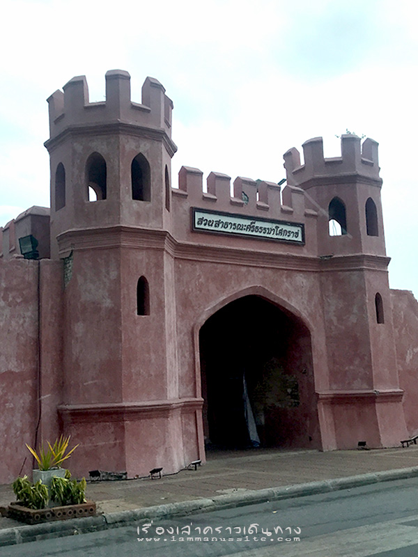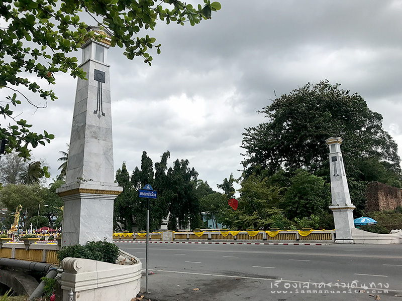 นั่งรถต่อไปอีกนิดเดียว จะเห็นแนวกำแพงเมืองเก่าอยู่ด้านหน้า ด้านซ้ายมือคือ สวนสาธารณะศรีธรรมมาโศกราช ขับผ่านแนวกำแพงเมืองเก่าไปข้ามคลองท่าเมืองไปจะเจอกับสนามหน้าเมือง เป็นสนามหญ้าขนาดกว้างขวาง ที่มักเอาไว้จัดงานต่างๆของเมือง สุดสนามหน้าเมือง จะเป็นศาลหลักเมืองนครศรีธรรมราช ให้เลี้ยวซ้ายที่ถนนหน้าเมืองไปวนหาที่จอดรถ ด้านหลังของสนามหน้าเมืองหรือด้านหลังสวนสาธารณะ แล้วลงเดินเที่ยวแถบนี้ได้