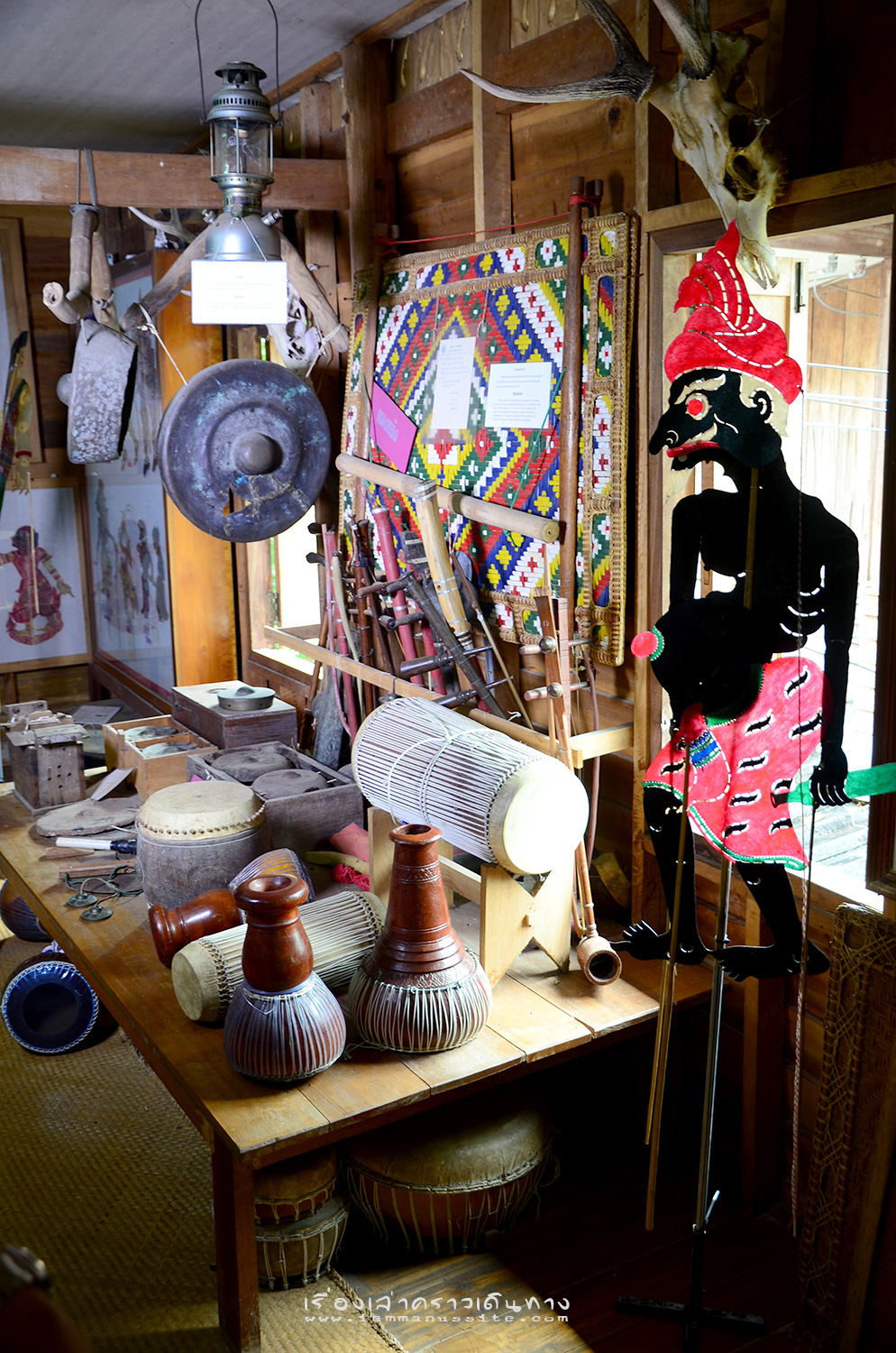 หลานสาวพาเราเดินดูตัวหนังตะลุงที่จัดรวบรวมไว้อย่างดี เปิดหูเปิดตามาก ว่าการแสดงหนังตะลุงมีในหลายชาติหลายภาษา เดินดูตัวหนังตะลุงในแต่ละชาติ และตัวหนังตะลุงโบราณต่างๆ ที่มีสะสมไว้มากมาย นอกจากนั้นก็เพิ่งได้รู้ว่าตัวตลกที่เรารู้จักแต่ เท่ง และ หนูนุ้ย ก็เป็นแค่ 2 ในหลายสิบตัวตลก ตอนท้าย พามาอธิบายวิธีตอกลายและลงสีหนังตะลุง และให้เราทดลองทำด้วย มันยากกว่าที่คิดเยอะเลย ตัวหนังตะลุงลายละเอียดๆถึงราคาแพง เพราะใช้ฝีมือ ใช้เวลา และแรงกายแรงใจมากเลย ส่วนอื่นๆในพื้นที่ก็มีโรงหนังตะลุง ที่เอาไว้แสดงโชว์ให้นักท่องเที่ยวดู แต่ตอนที่เราไปไม่มีแสดง เสียดายมาก