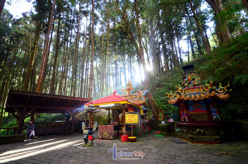 ถึงเวลารถไฟมา เหมือนเช่าเหมาขบวน ทั้งตู้มี 4 คน ตู้อื่นๆก็มี 2-3 คน นั่งเพลินๆ จาก Alishan station ไปลงที่ Sacred tree station แล้วเดินเที่ยวในบริเวณนั้น ตามแต่ใครจะอยากเดินแค่ไหน ตามจริงมันเดินวนไปได้ถึง Sister pond ที่ใครหลายๆคนชอบถ่ายรูปมา แต่ช่วงนี้ทางเดินที่เชื่อมต่อไปมันปิด ถ้าจะไปต้องวนมาลงไปทาง Zhaoping Station แล้วเดินย้อนขึ้นไปอีก เลยข้ามๆไป ไม่เน้นครบทุกจุด เน้นความเพลิดเพลินของป่าสน ทางเดินสงบดี คนไม่มาก มีแต่ป่าสน ถ้าคนไม่ชอบคงกราบลาตั้งแต่ครึ่งชั่วโมงแรก แต่เราชอบนะ สดชื่นดี เดินไปเรื่อยๆ วนไปวนมา เพราะงงกับแผนที่มาก มันดูไม่ตรงพิกัดเอาเสียเลย เอาเป็นเดินตามป้ายจะดีกว่า ทางเดินมีทั้งทางราบ ทางชัน บันไดก็เยอะ ใส่รองเท้าเดินสบาย เตรียมน้ำเตรียมขนมมาเผื่อหิว และเสื้อหนาวตัวบางๆมาด้วย เดินวนจนพอใจก็เดินกลับลงมาด้านล่าง เริ่มโพล้เพล้พอดี ดูอุณหภูมิที่เสากลางลานก็ 8°C ดีที่ไม่ค่อยมีลม