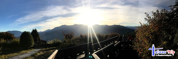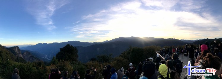 นอกจากเราก็มีคนอีกหมู่หนึ่งกึ่งเดินกึ่งวิ่งไปทางเดียวกัน เป็น 500 ม. ที่หนาวแต่เหงื่อไหล เพราะจ้ำสุดชีวิต และมันเป็นทางเขาด้วย เดินตามริมถนนนี่แหละ มีขึ้นเนินลงเนิน ให้ได้ลิ้นห้อยพองาม ในที่สุดก็ถึง Ogasawara Mountain Viewing Lot มีผู้คนอยู่พอสมควร แต่ด้วยลานที่กว้างและมุมเปิด 360° ทำให้ไม่อึดอัด เลือกยืนชมกันตามสบาย พระอาทิตย์ขึ้นหลังเขานะ มันเลยขึ้นมาก็แสงแรงแล้ว ดังนั้นจังหวะที่แสงเรืองๆหลังเขาก็น่าจะดีสุด แล้วก็รอพระอาทิตย์โผล่มาให้สว่างถ่ายทิวทัศน์ได้ แสงเช้าอุ่นๆกับทิวเขาอาลีซาน สวยจับใจ ไม่เสียแรงที่วิ่งลิ้นห้อยมา ขอย้ำ! อย่าหยุดที่จุดชมวิวตรงสถานี