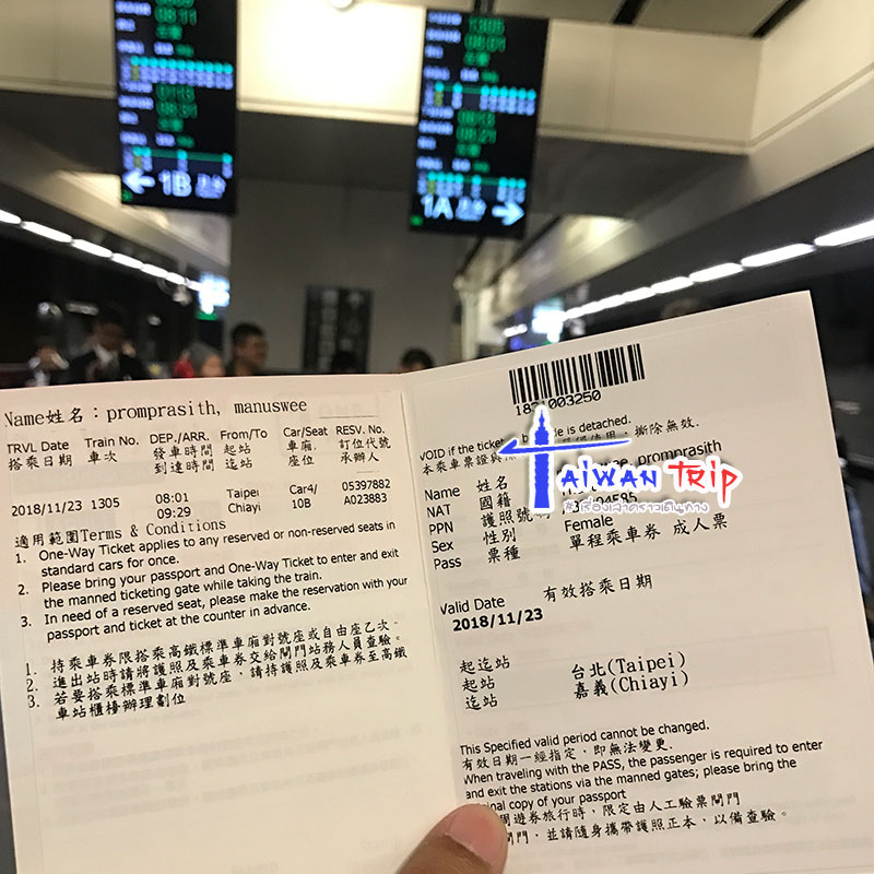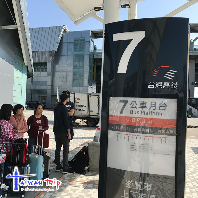 วันนี้ย้ายที่เที่ยวออกนอกไทเป ฝากกระเป๋าทิ้งไว้ที่พัก 1 ใบ เพราะจะกลับมานอนที่นี่อีก 1 คืนก่อนกลับ สมบัติที่เหลือก็ลากไปขึ้นรถไฟความเร็วสูง ที่สถานีก็อยู่แสนจะใกล้ที่พัก อ่อ…ได้ซื้อ voucher THSR Taipei -> Chiayi มาตั้งแต่เมืองไทย ประหยัดเงินไปเกือบร้อยบาทต่อคน แล้วเอา voucher มาขึ้นตั๋วจริงที่สถานี ซึ่งเราไปออกตั๋วมาตั้งแต่เมื่อวานตอนเช้าแล้ว วันนี้ก็มาขึ้นรถตามเวลาที่จองไว้ ตั๋วที่ได้มาเป็นเล่มกระดาษ เอาให้เจ้าหน้าที่ดูเค้าจะเปิดประตูให้เข้ามา ถ้ามีระบุที่นั่งก็ไปรอตามตำแหน่งเลขตู้ได้เลย รถไฟความเร็วสูงดูดีมาก สะอาด วิ่งเร็วและนิ่งใช้ได้ เราเลือกเที่ยว 1305 นั่งมาแค่ 1.5 ชั่วโมง ก็ถึงแล้วเมืองเจียยี่ (Chiayi) ลงรถไฟมา งงๆสงสัยก็เข้าไปถาม Information center เลย ว่ารถไปอาลิซานขึ้นตรงไหน ซึ่งจุดขึ้นรถก็อยู่ตรงปากประตูนั่นแหละ ออกไปก็จะเจอช่องๆขึ้นรถ มีหลายปลายทางเราก็เอากระเป๋าไปวางคิวรอที่ช่องรถไปอาลิซานเลย ค่ารถจ่ายกับคนขับ หรือใช้ easy card แตะบนรถได้เลย ไม่ต้องซื้อตั๋วล่วงหน้า