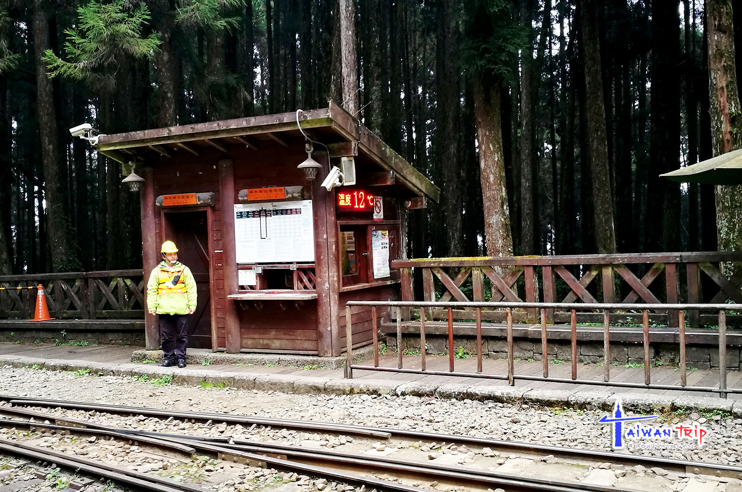 ถึงเวลารถไฟมา เหมือนเช่าเหมาขบวน ทั้งตู้มี 4 คน ตู้อื่นๆก็มี 2-3 คน นั่งเพลินๆ จาก Alishan station ไปลงที่ Sacred tree station แล้วเดินเที่ยวในบริเวณนั้น ตามแต่ใครจะอยากเดินแค่ไหน ตามจริงมันเดินวนไปได้ถึง Sister pond ที่ใครหลายๆคนชอบถ่ายรูปมา แต่ช่วงนี้ทางเดินที่เชื่อมต่อไปมันปิด ถ้าจะไปต้องวนมาลงไปทาง Zhaoping Station แล้วเดินย้อนขึ้นไปอีก เลยข้ามๆไป ไม่เน้นครบทุกจุด เน้นความเพลิดเพลินของป่าสน ทางเดินสงบดี คนไม่มาก มีแต่ป่าสน ถ้าคนไม่ชอบคงกราบลาตั้งแต่ครึ่งชั่วโมงแรก แต่เราชอบนะ สดชื่นดี เดินไปเรื่อยๆ วนไปวนมา เพราะงงกับแผนที่มาก มันดูไม่ตรงพิกัดเอาเสียเลย เอาเป็นเดินตามป้ายจะดีกว่า ทางเดินมีทั้งทางราบ ทางชัน บันไดก็เยอะ ใส่รองเท้าเดินสบาย เตรียมน้ำเตรียมขนมมาเผื่อหิว และเสื้อหนาวตัวบางๆมาด้วย เดินวนจนพอใจก็เดินกลับลงมาด้านล่าง เริ่มโพล้เพล้พอดี ดูอุณหภูมิที่เสากลางลานก็ 8°C ดีที่ไม่ค่อยมีลม