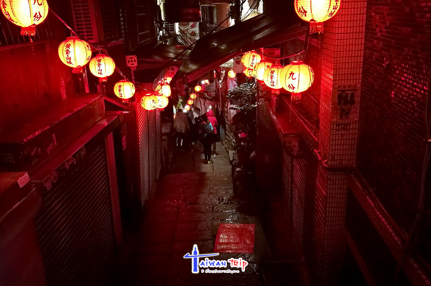 ถึง Jiufen เข้าห้องพักเรียบร้อยก็เกือบสองทุ่ม ที่พักดีงามมากวิวสวยแน่นอน อยู่ชั้นบนของตึก Family Mart ตรงข้ามกับ 7-11 ปากทางเข้า Jiufen Old Street เลย เดินเข้าไปดูมันเริ่มปิดหมดแล้ว เจอร้านก๋วยเตี๋ยวลูกชิ้นก็เลยจัดเป็นอาหารเย็นซะ แล้วเดินสำรวจไปเรื่อยๆ ร้านรวงปิดเกือบหมดแล้ว เดินไปจนถึงร้านดัง A-mei Teahouse ซึ่งยังเปิดไฟสว่างไสว ถ่ายรูปชุดแรกไว้ก่อน พรุ่งนี้มาเดินใหม่ตอนหัวค่ำ