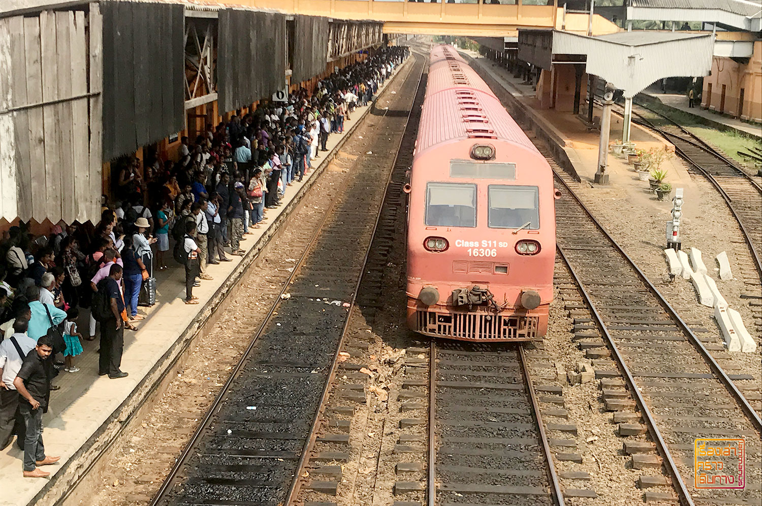 รถไฟจอด Fort Station ที่เราลงรถบัสครั้งแรก มี Backpacker ขึ้นมาอีกเยอะ แต่ที่นั่งเหลือน้อย จึงต้องเริ่มยืนกัน นับเป็นข้อมูลเล็กๆน้อยๆที่น้องนิ่มรู้มาแต่ได้ประโยชน์มาก โคลอมโบอากาศค่อนข้างร้อนตามแบบเมืองใหญ่ทั่วไป แต่พอรถไฟวิ่งลมพัดเข้ามาก็เย็นสบาย ลมกลับไม่มีไอร้อนติดมาให้แสบตัวเหมืองเมืองไทย รถไฟวิ่งผ่านสถานีเล็กๆน้อยๆ จนออกนอกเมืองเลาะริมทะเล เป็นทางรถไฟสวยงามทีเดียว [https://youtu.be/fzWnfuMQkAE]