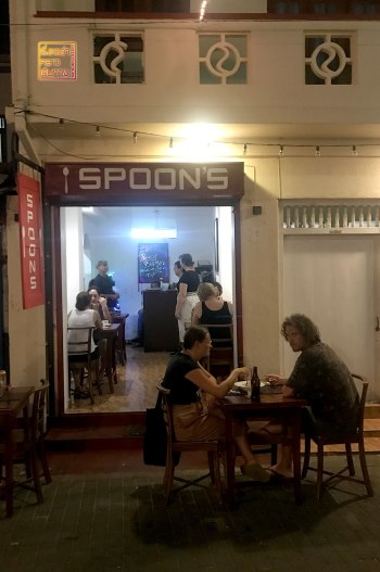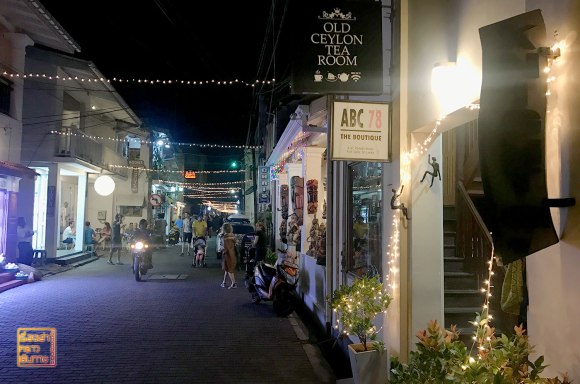 อิ่มดีแล้ว ก็เรียกตุ๊กๆกลับไปใน Galle Fort เดินเล่นริมทะเลได้ ลมเย็นดี แต่มืดเกิน เลยเลี้ยวเข้าไปเดินเล่นในส่วนเมืองเก่า ทาง Pedlar Street มีที่พัก ร้านอาหาร ร้านขายของเก๋ๆ มีแกลเลอรี่ มีร้านชากาแฟ ตัวอาคารเป็นแบบดั้งเดิม (Dutch colonial buildings style) ดูมีเสน่ห์มากๆ เดินเที่ยวได้ตลอดถนน นักท่องเที่ยวนิยมพักกันในนี้ แต่ค่าที่พักก็สูงตามทำเล เดินเล่นจนไปทะลุถึง Old Dutch Hospital ที่ปัจจุบันเปลี่ยนเป็นโรงแรม ร้านค้า ร้านอาหารสุดคลาสสิค แวะพักเหนื่อยจิบ Lion Beer แล้วถึงเรียกตุ๊กๆกลับบ้าน