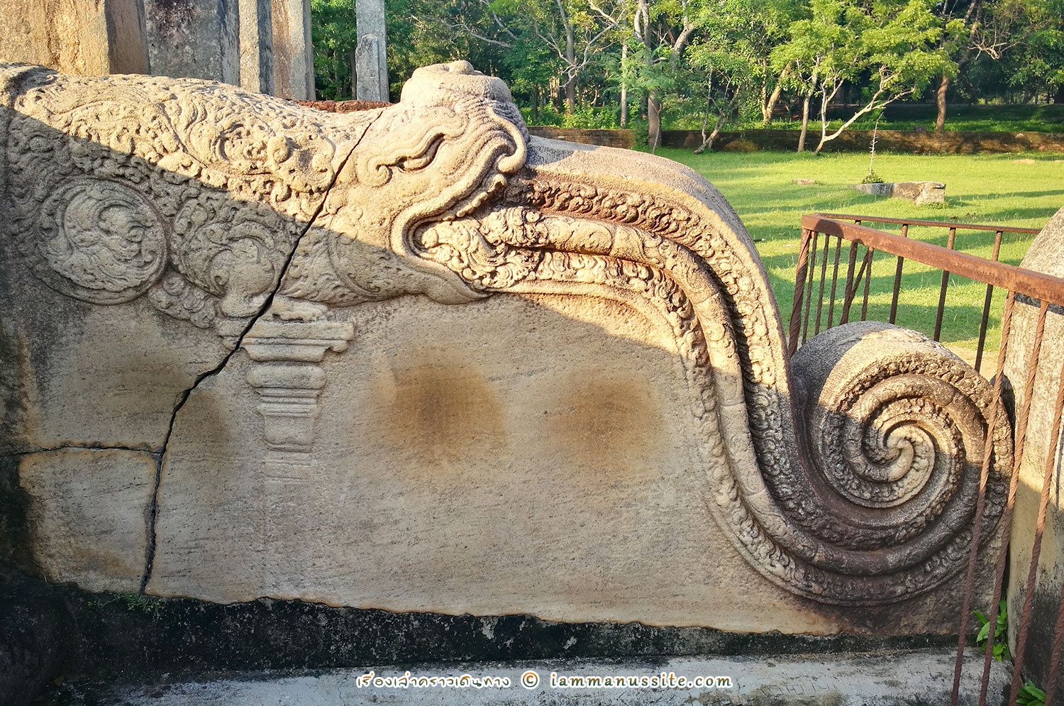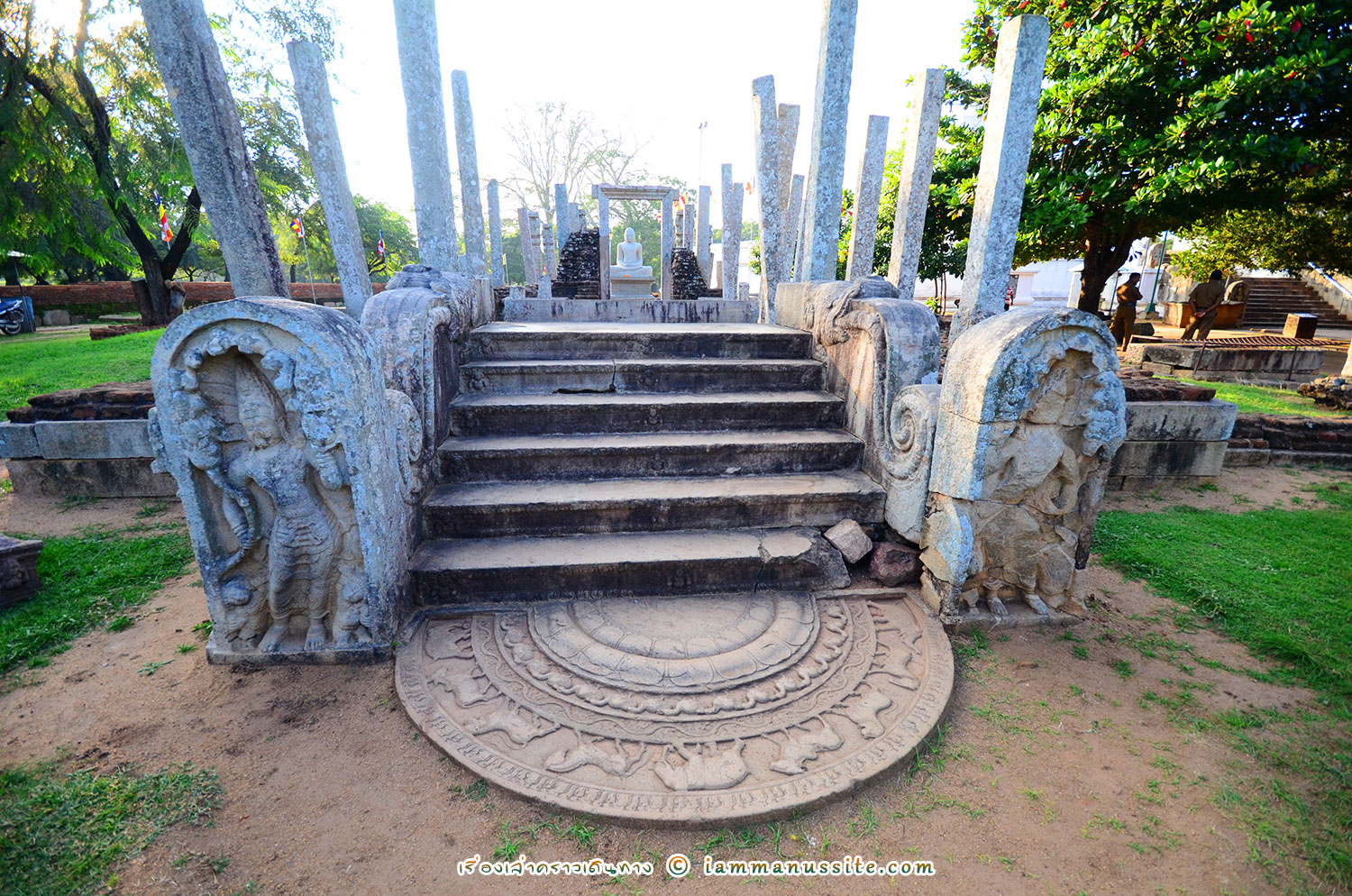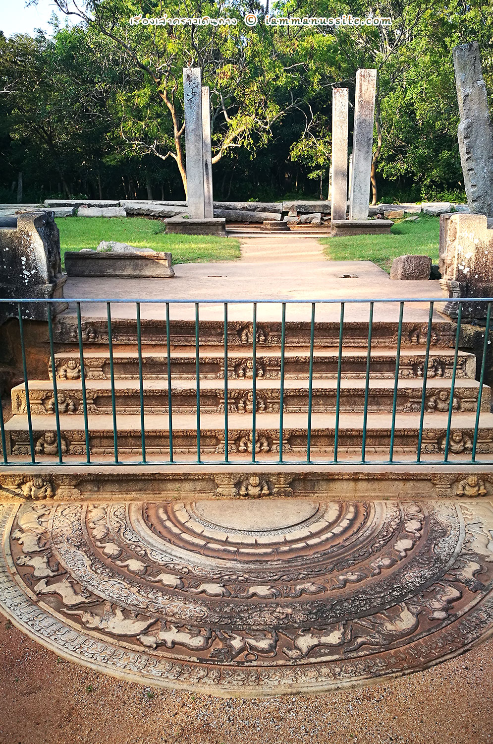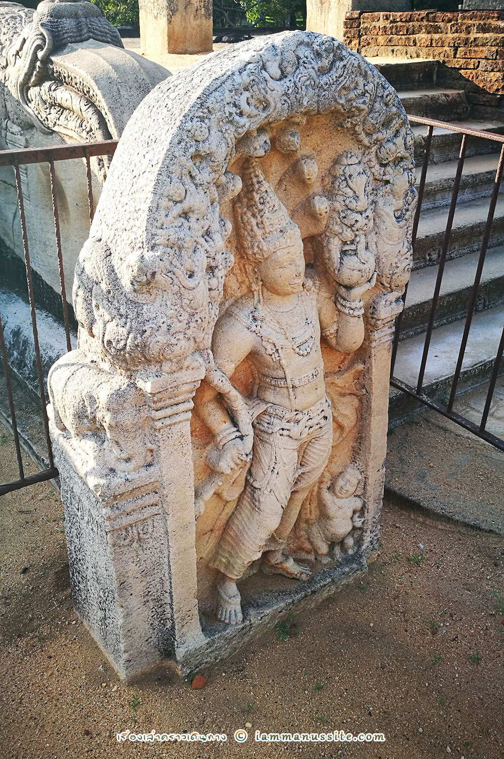 ใกล้ๆกันมีรูปแกะสลักทวารบาลเฝ้าทางขึ้น Polonnaruwa Vatadage ซึ่งตอนนี้เหลือแต่โครงเสาและองค์พระ รูปปั้นทวารบาล Guardstone (Mulagara) เป็นศิลปะแบบสิงหลโบราณ แกะสลักสวยงามมาก